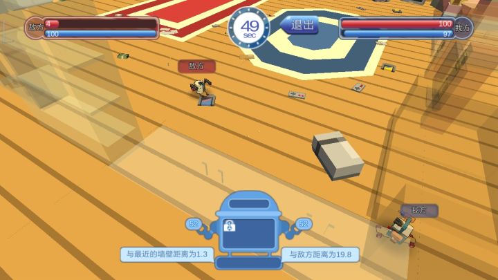先看动图逃逸者:你不要过来啊!!!追击者:喂,喂。我跟本追不上啊啊啊啊!造成这种情况的原因只有一个追击者移速小于逃逸者[哭]如图:那怎么办呢?看图↓我对你疯狂壁咚,而你却无动于衷,我的爱如潮……水。。。咳咳,扯远了。我将这种行动模式的AI称为“面壁思考者”言简意赅就是,如果于墙壁距离小于[一个实数],则追击者向右/左偏转[一个度数]。以此达到拦截逃逸者的目的。在移速差不变的情