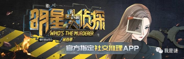 明星大侦探来啦明星大侦探即将火热归来啦!作为全国首档明星探案推理类节目拥有着超豪华的实景和道具!超有趣烧脑的剧本!是万千推理发烧友的真爱节目!今天谜谜要大张旗鼓的告诉你们一个好消息我是谜与明星大侦探正式达成官方合作啦! 【明侦福利】拍摄现场亲体验关注我是谜app和公众号活动去明星大侦探的拍摄现场亲临现场的体验一次国内顶尖超豪华的实景明侦同款剧本 明侦定制道具关注我