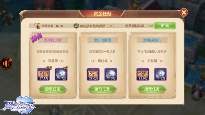 《风色世界》已经开测了哦~~相信前期的小伙伴们一定都是“不愁吃穿”的——毕竟官方辣么大方,钻石、金币大把的送,艾希从没见过这么给力的活动~但是艾希还是想偷偷告诉各位,在《风色世界》中后期,游戏中“银币”的消耗速度可能会大幅提高哦~那么到时候游戏币吃紧怎么办?没关系,艾希今天就为大家盘点一下《风色世界》里快速赚钱的三个方法,教大家快速积累财富,游戏后期也能吃穿不愁~赏金任务:赏金任务是日程任务