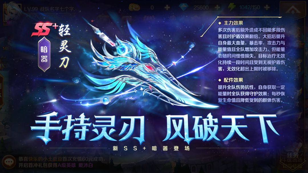 一年一度的新斗罗大陆周年庆即将在本月下旬与大家见面,届时会有更多精彩的内容和福利送给各位魂师。 本次更新带来了全新SS+暗器轻灵刀,它可以提高小队的上伤势抗性以及佩戴魂师的大招伤害,进一步的提高输出魂师的能力。 更新时间: 8月5日6时,预计更新3小时,如遇特殊情况延迟开服,每延迟1小时额外补偿300钻。 更新福利: 登录第1天:钻石500+项链突破石*150+项链强化元素(橙)*100; 登录第