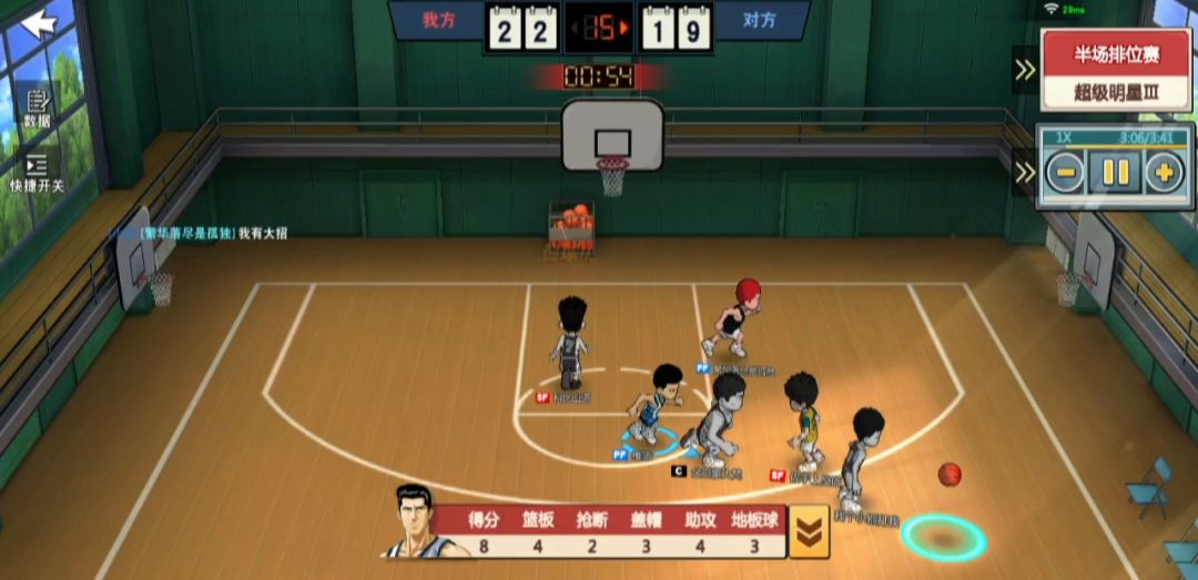 两分=(持球抢断风险+过人撞停风险+传球截断风险+传球失败风险+灌篮上篮被帽风险+过人断球风险)*50%(灌篮,上篮失败风险) 三分=贴身盖帽风险(有挡拆或者集训三井寿忽略)+队友语音:找空位+多传球风险(回合开始拿球就投忽略)+浪投行为风险(助攻一个球可破此风险)+队友不传球风险(双排可破/三分之一系统球权)*50%(集训三井寿和有大招忽略)