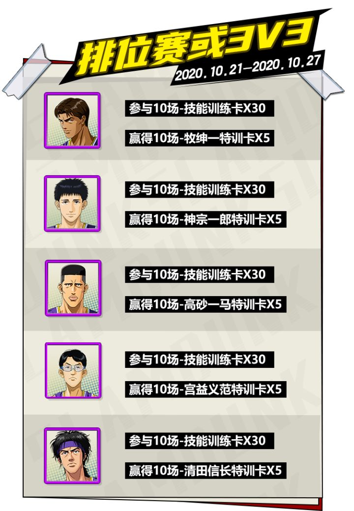 各位篮球手:晚上好,大家期待已久的海南大集结将在10月21日完成!为了庆祝这一时刻,我们为大家准备了大型福利活动,活动期间达成要求即可免费解锁武藤正资料,更有超多缤纷好礼等你来拿!赶紧跟着小晴来看看详细活动内容吧!一.登录有礼【活动时间】2020年10月21日维护后~10月27日23:59【活动说明】活动期间,累计登录游戏达到指定天数即可领取丰厚奖励,更有钻石夺宝抵用券限时放送。【兑换列