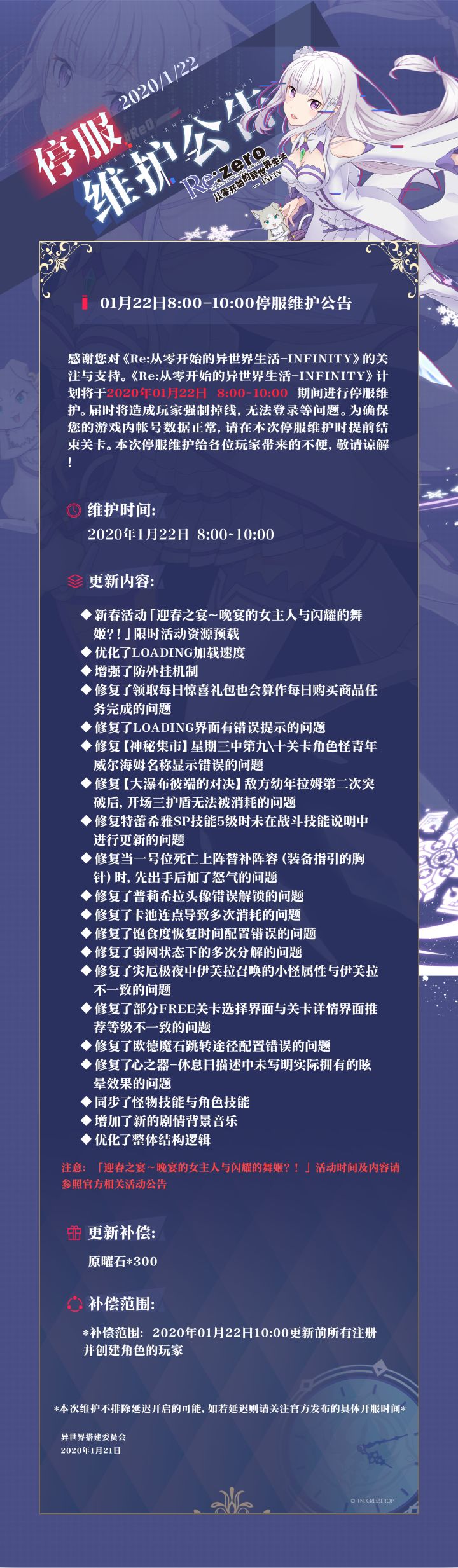《从零开始的异世界生活-INIFINITY》1月22日停服维护更新预告