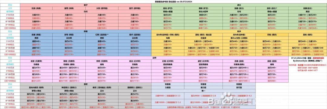 重点:以上表格的属性是给毕业进度的老咸鱼内卷用的,对前中期玩家没有任何参考意义,小萌新只是给大家一个大致的参考,新玩家只要模型对了即可,不必追求高属性!!一般来说即使英雄属性不及格也是可以毕业的。