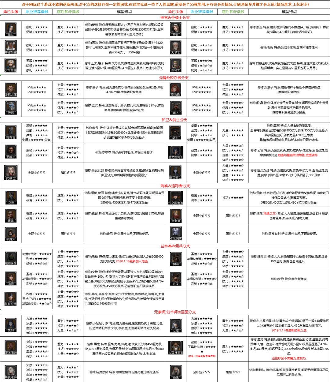 最新的转职属性参考表。