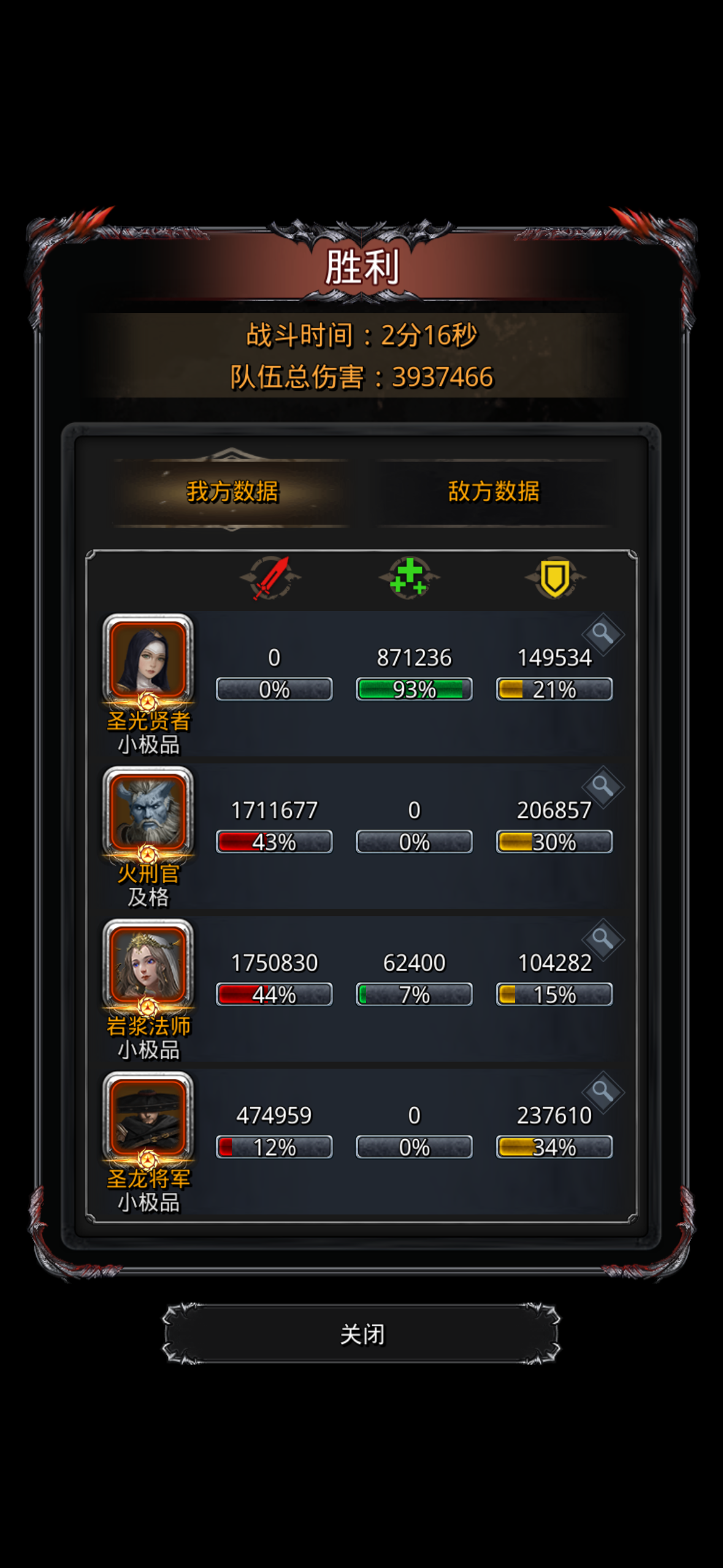 这游戏对萌新真不友好,看了许多攻略都不详细,首先三个奶的奶量至少300以上,技能CD至少有一个3.5秒,另外两个4秒以内,战术百百分之一奶队友真他全关。刺客血量最低,全速度装备,战术连击,其他的全关了。其次就是力量低了饿死在路上,所以我带了一个月阶的。
