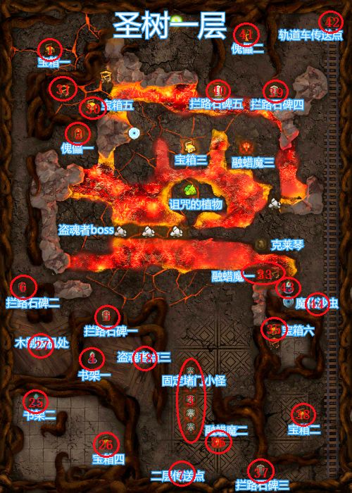 1楼 拿两个上古坚木,开荒最终BOSS前需要完成的四个支线任务 2楼 开荒一队 3楼 开荒二队 4楼 魔化沙虫(最终奖励“雷矢巨斧升级蓝图”) 5楼 盗魂者首领(最终奖励“枯木之杖升级蓝图”) 6楼 恶魔大君 7楼 魔将•德拉吉斯 8楼 恶魔之门 9楼 阴影魔将•托雷佐 (打完6个怪后在(7,7)处获得红色衣服“万魔甲”) 10楼 最终BOSS 伊兹玛尔(获得红色饰品“焚天魔印”) 主线剧情结束 1