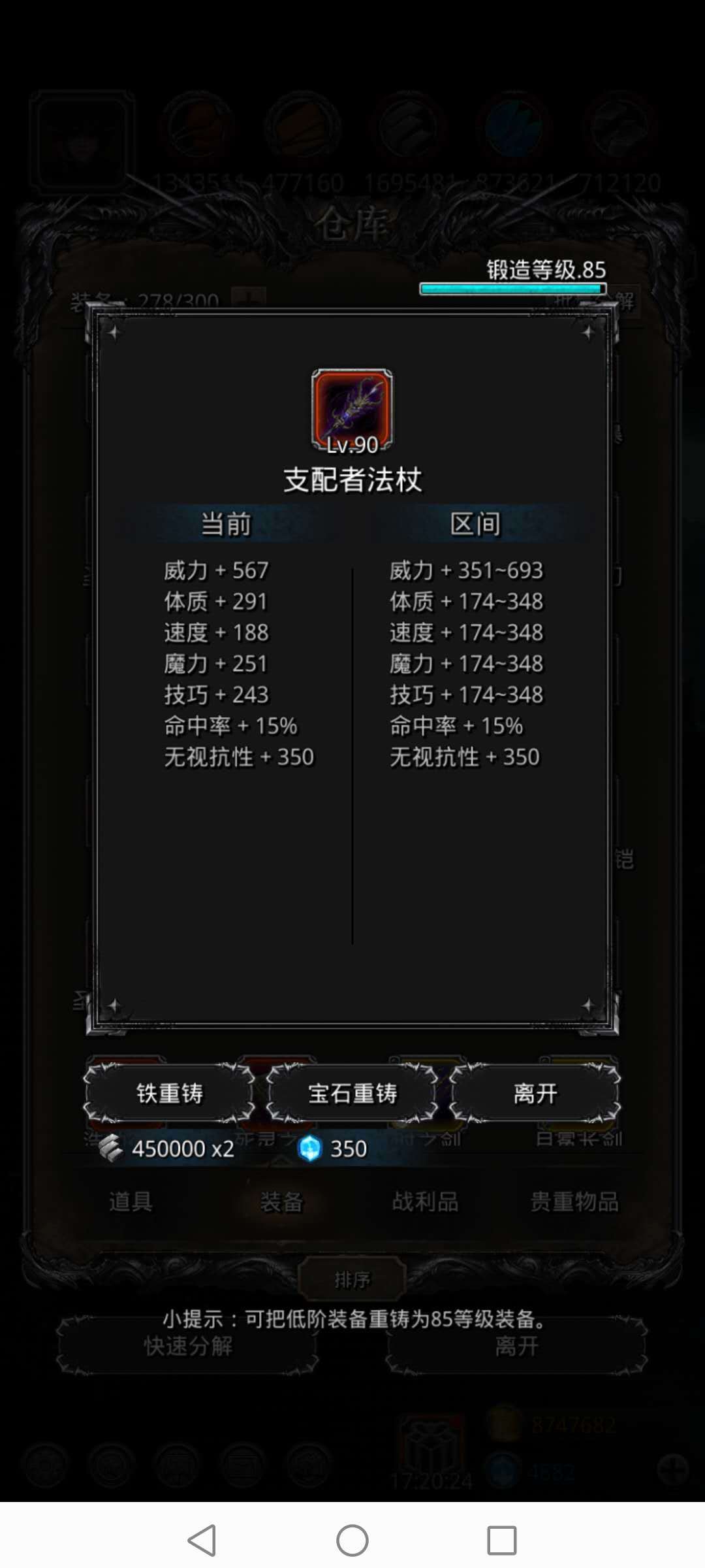 来个85锻支配杖镇楼吧 6自制红装通关遗迹8之后,开始进军遗迹9;由于配置问题,还是自己研究出了一些心得体会,给大家作为参考吧。 惯例的进度汇报:锻造85锻,裂隙卡61层,战力测试通关S-,四大金刚全打倒;通关遗迹8后开始上月岛,第三周周五拿下独裁,周日拿死灵书;第四周周四拿下支配。 通关全部红装放图: 经过与吧友讨论,做出了一些细节调整和优化,将4周通改为三周通,双传猎改为单传猎。 需要的具体配