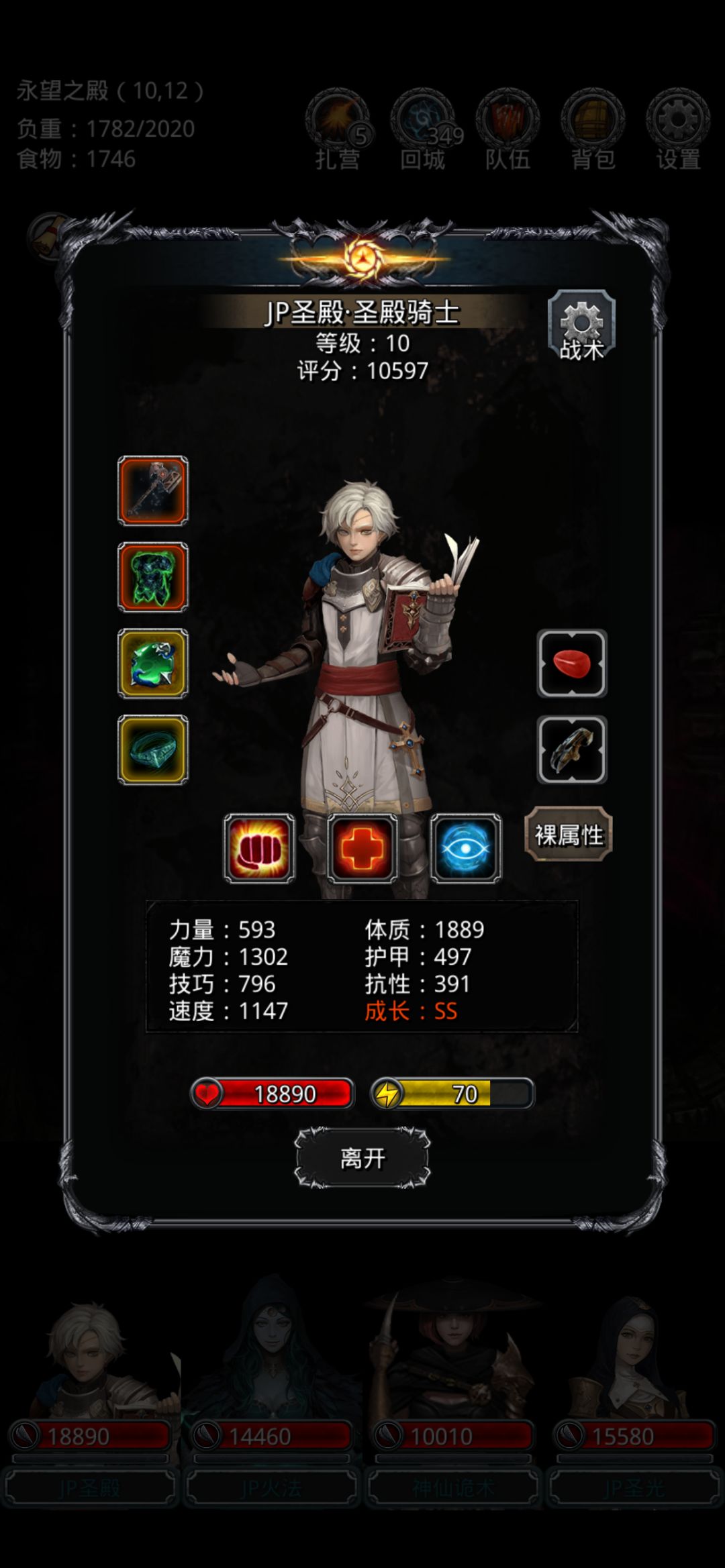 面板如图,法师30命中,剑魔39命中。法师圣迹68,祭祀70,骑士52。 90段。遗迹8没通,半门没过。。。 因为我没咸鱼剑,咸鱼袍。昨天卡在这里刷了百八十次,当时我输出只能用火法+火刑 或者血法+火刑,但是火刑只有时斧,最好一次还差14w血,期间我还在咸鱼问过代打捂脸哭[表情_捂脸哭],都说我这配置差很远,至少要有咸鱼袍或者兽王戒指,咸鱼剑什么的。于是放弃。 今天看了一下攻略,正好有剑魔和时剑,