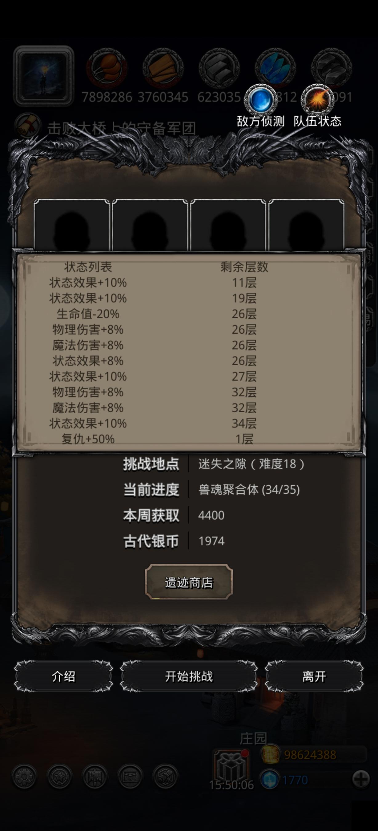 虽然 抄袭的,还是要发一下,三次过的,也不算刷脸,装备如上,属性如下 1.站位:独裁 幻境 圣光 圣殿 独裁 :技巧4371 幻境:技巧 3829 ,有技先发、命中63%;开减速 圣光:命中50%,开减抗 圣殿:命中:70% 开晕 这个影兽主要是命中的问题,一直被晕到死的