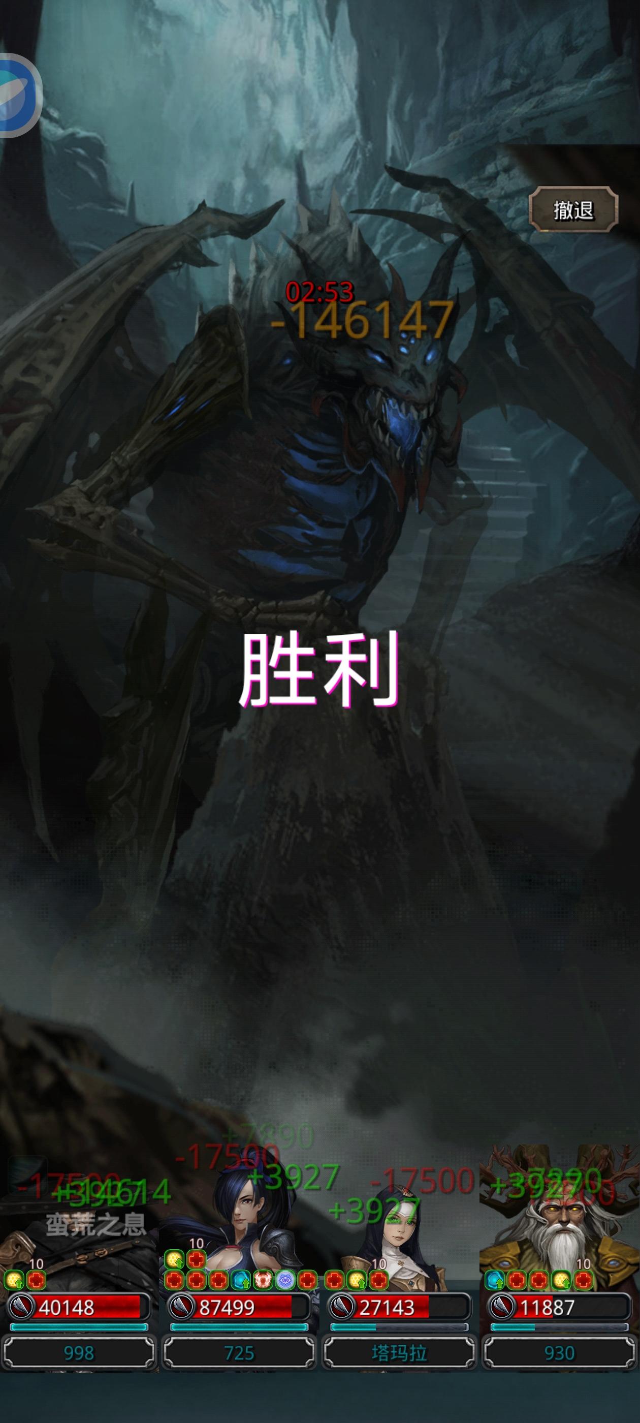 由于上周才过遗迹8,周末只勉强收掉了大眼睛,但是进度卡到老苏了,好想打过去啊,但是网上找到99%的攻略都需要遗迹9装备或800甲或盾锤,但是我都没有,只好努力寻找办法。终于我在一个800甲里过老苏的帖子里找到了灵感。使用神官双奶自己和剑豪加血法独裁的攻略,终于干翻老苏。 原理就是让三人恢复量大于老苏伤害,开始血法用的护甲装最后差1w血翻车如图6,直接改双甲献祭,4分半就过了如图5。只要让神官能抗住