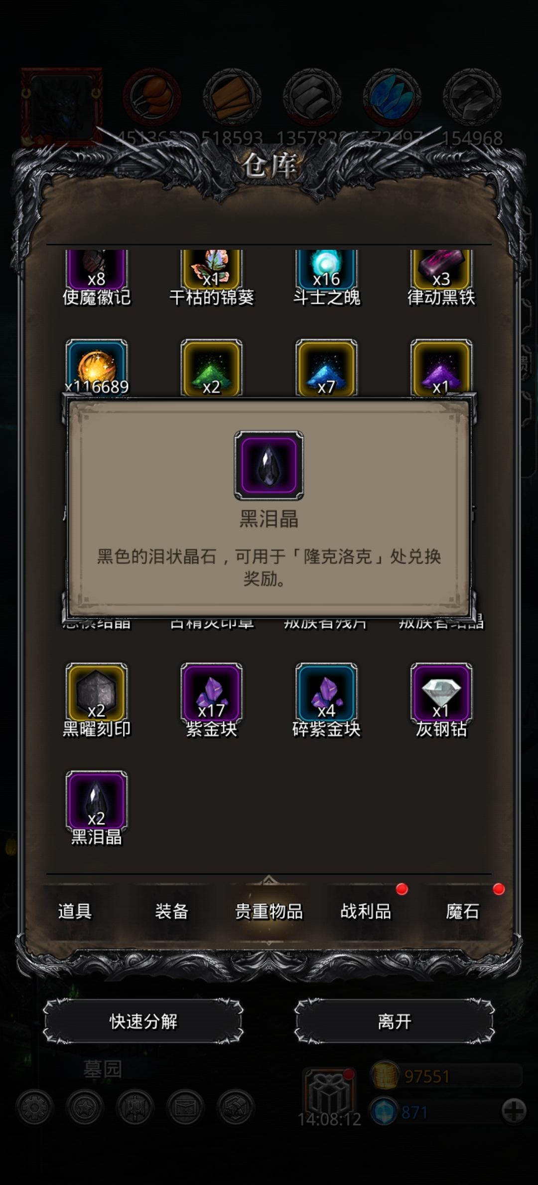 其一周年庆礼包,没钱可以跳过,无事发生。 其二战令兑换的宝箱:可以买了矿石券箱子,底下是战令币兑换的宝箱,头像,各种属性先发,还有吸血战利品。 矿石箱子跳过,先发力魔战利品跳,毕竟太多了,速度体质有兴趣可以换,对前期有一点点帮助。 总的来说就是为了让各位还没两个魔吸战利品的不用拼脸快点过21boss吧,还改了枯萎,听说也能用枯萎过了。