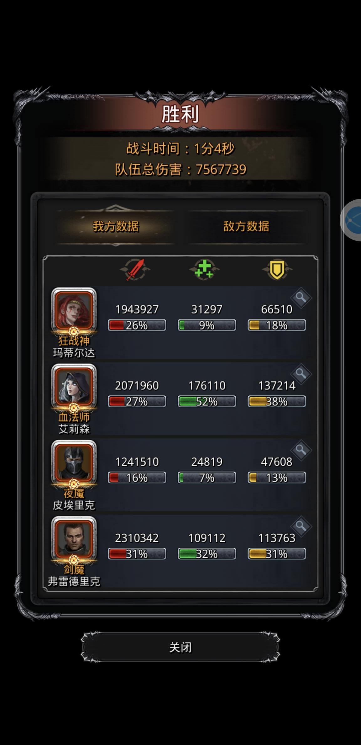卡了3天,熟悉操作,配装跟wike差不多,略有改动。能坚持打完时间差伤害,还得刷脸。 巫医2500奶量,先手奶黑骑,在奶自己。看情况要奶剑豪。火邢得奶,看血量输出的,不然时间打完会剩50w左右的血。也看剑豪的输出,90%的命中剑豪会打不中,战利品是吸血10%,血量战力品,在满足血量以后可以带命中会更稳,魔石是15狂暴。火邢的命中在80多。稳定输出在260w左右。就看剑豪能打200w就能过了。