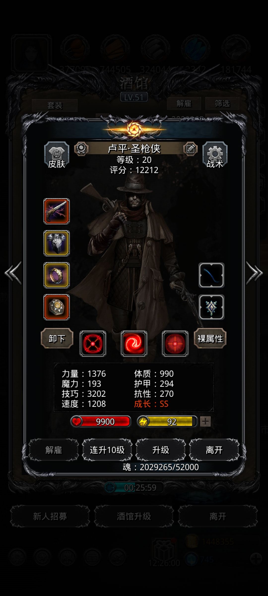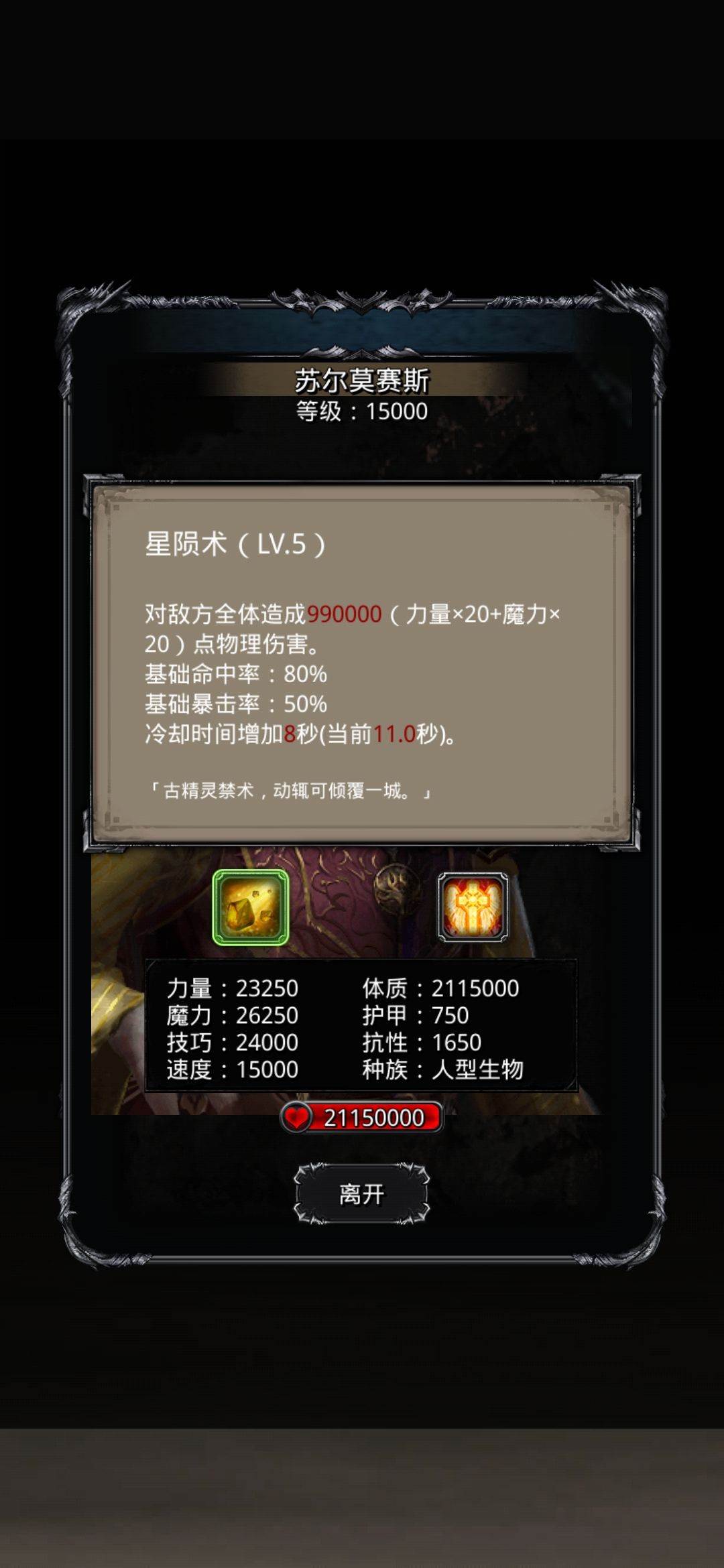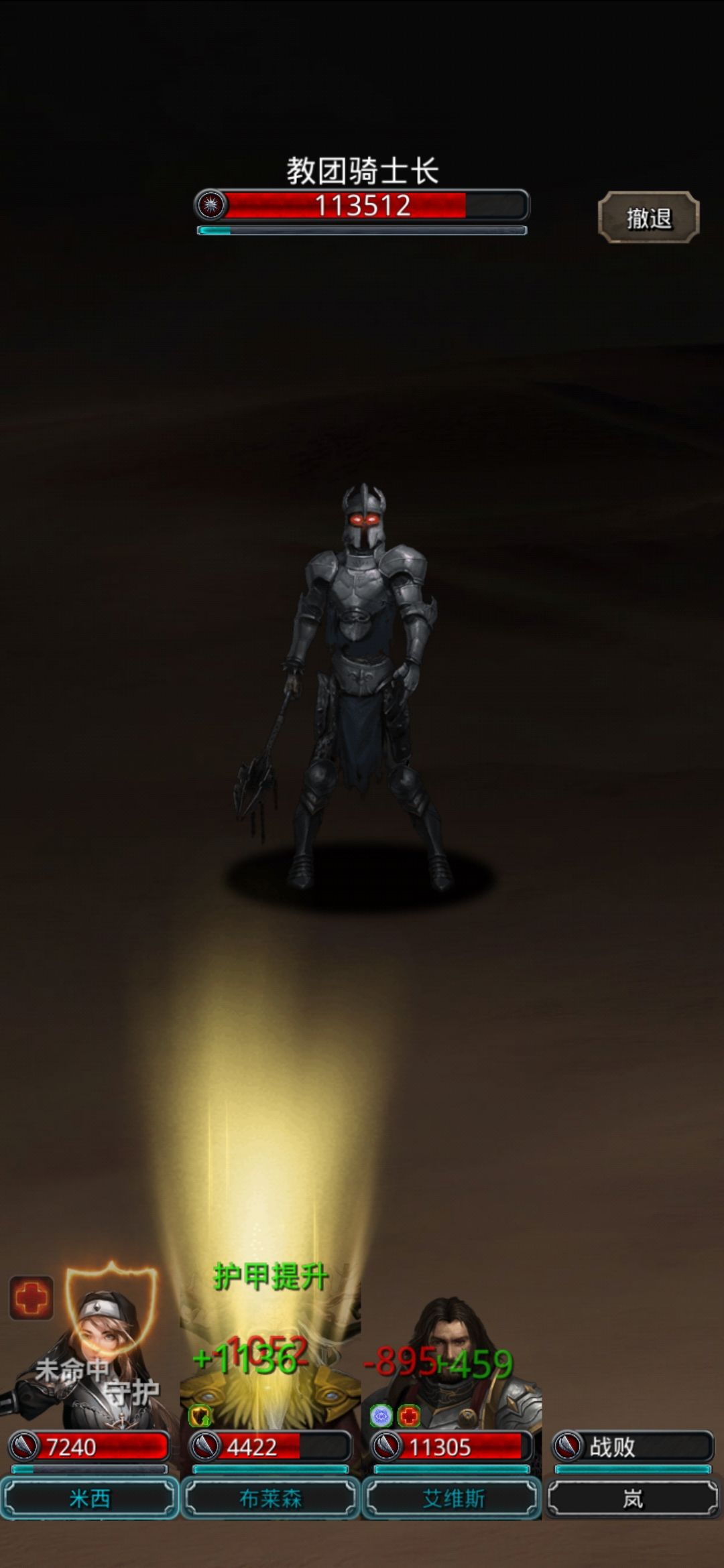 图25恶魔大君心得(只要手动神官) 站位、参考属性看图。 打法: 火刑:不能miss一次,带先发,吸血 圣龙:始终嘲讽,反击,带先发。我这里没有反击,这样不会断嘲讽,只要火刑不miss,伤害肯定够。 神官:一直奶圣龙,注意:BOSS群攻前自己或者祭祀奶量不健康可以奶一下 祭祀:始终奶