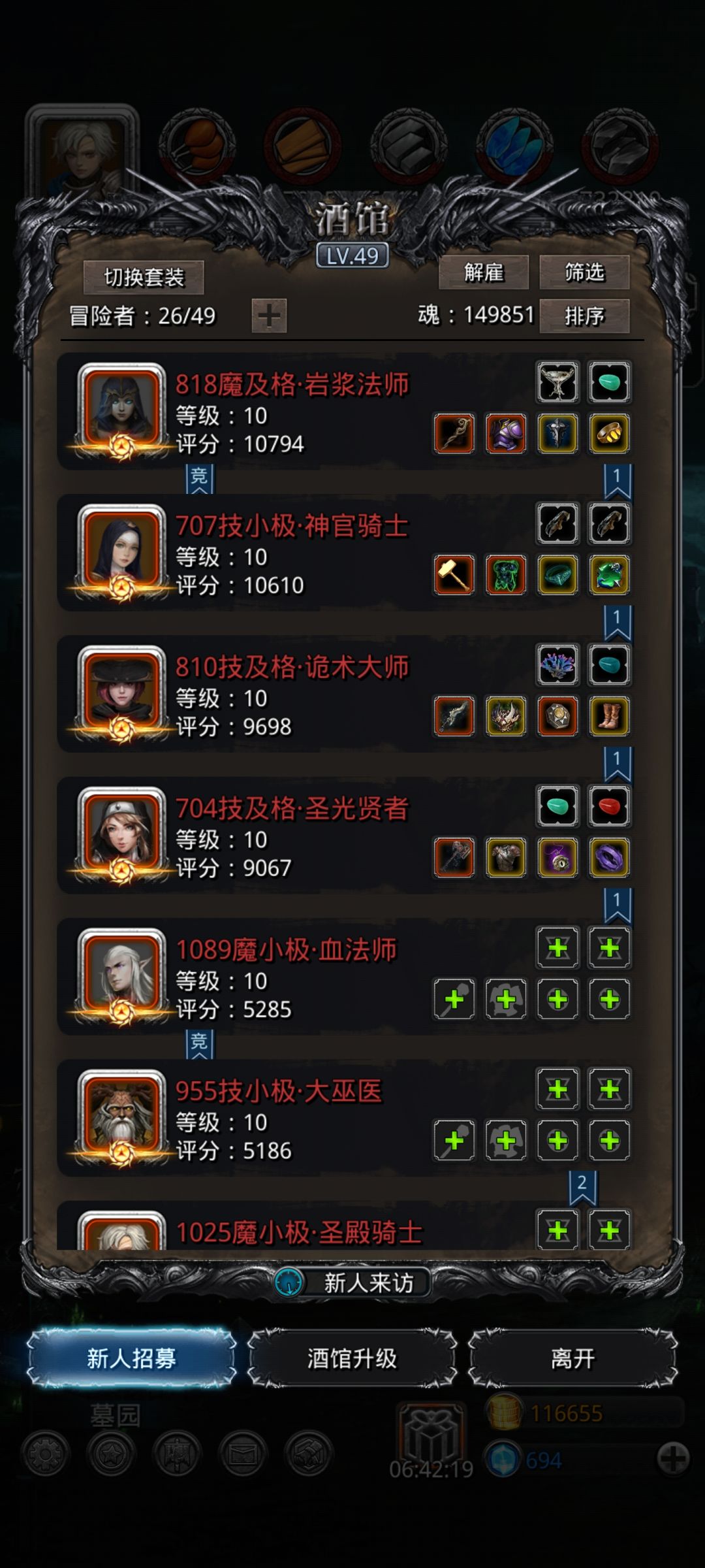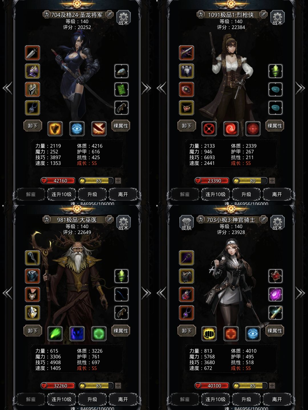 最近在肝帝的努力下26的英灵终于达到了6组,每组下限1050上限1400,基本所有的英灵阵容都是冒险挂榜套,英灵中最难对付的是黑骑和魔印的燃烧(秒掉就不用管)我的打法贪无限刷有的会秒不掉。下面说下配装思路和线路选择。 配装思路 佣兵装备配置 蛮子最好必有不需要很高破甲有一千以上够了 法师配最高无视打黑骑 任意一个嘲讽 工具人和任意一个带龙包和自回的工具人 这么一套食物基本在两万以上 蛮子群吸火法单