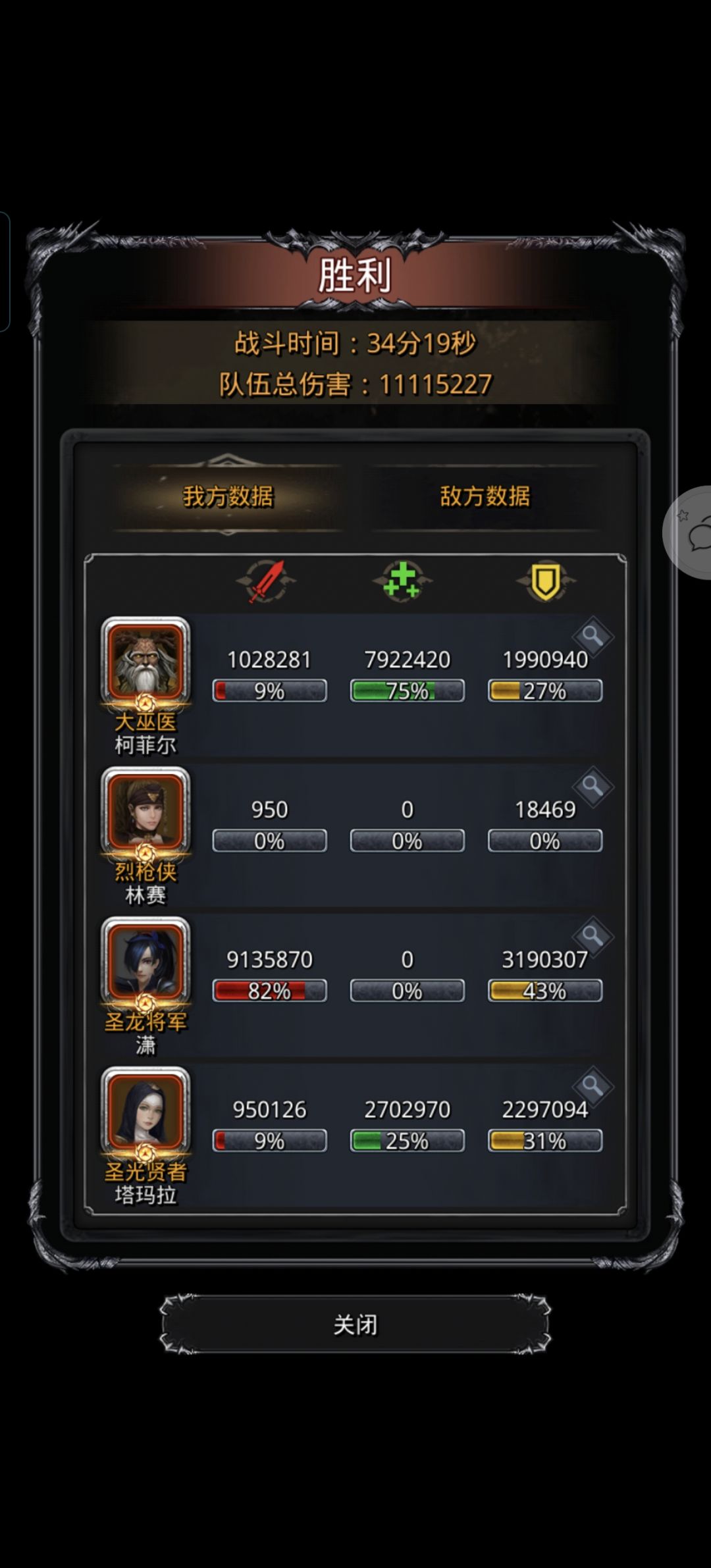 思路:圣龙反击,独裁枪和传奇法师互相给队友加技巧,奶妈(教宗、圣光皆可)无脑加魔抗。 配装如下-- 操作:圣龙设置始终反击,枪手始终放射击摸奖加技巧,传奇法师设置双奶线100%,开局手动奶第一次后自动,教宗设置始终奶,第一次奶后战术切回100%,以防满血空奶队友暴毙。 如上:挂机一分钟多一点,boss便要归西。