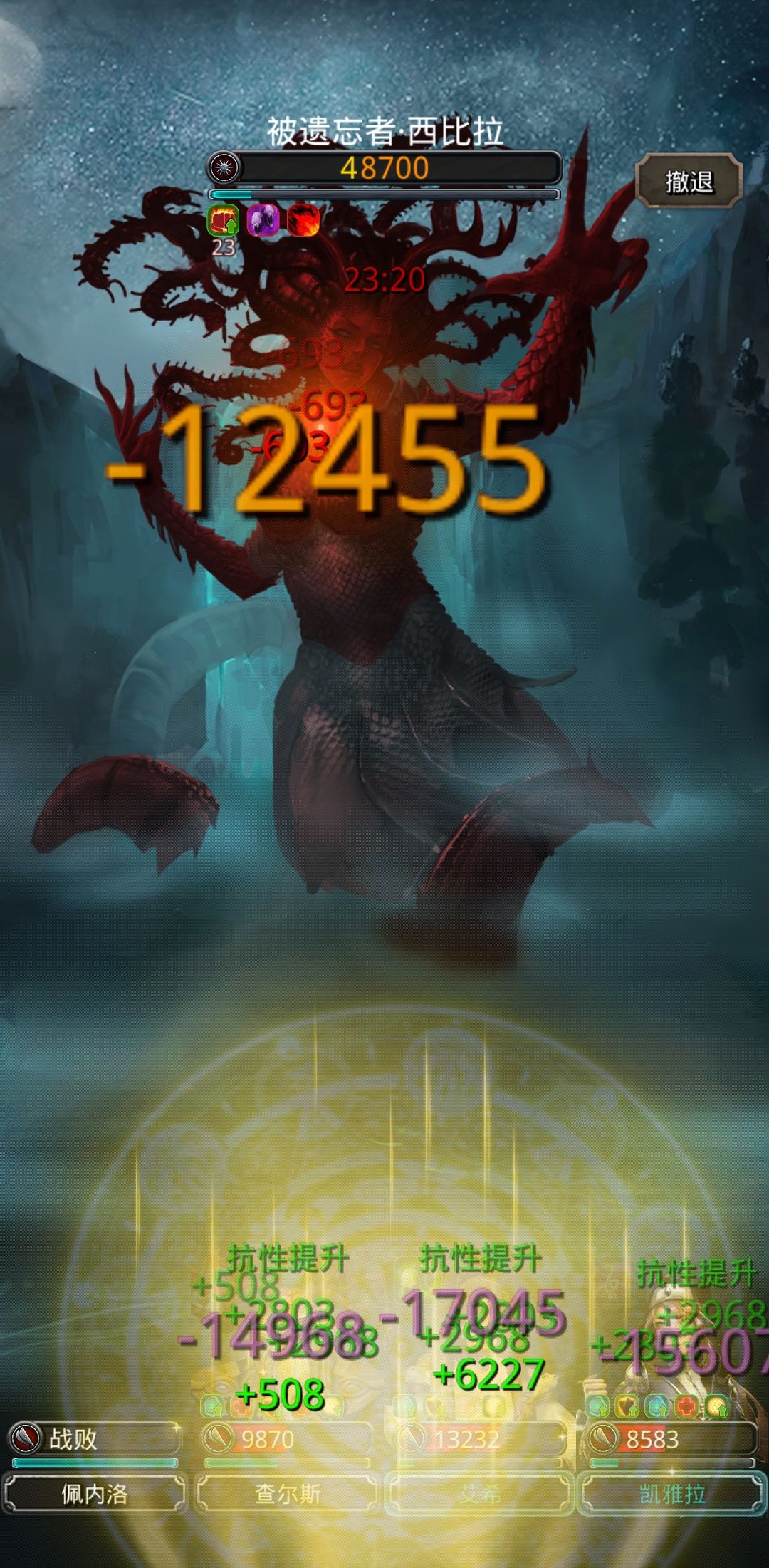 小技巧二:如果圣龙扛不住可以把冥心换成星国 但是伤害会低一点点 需要幻境配置高点
