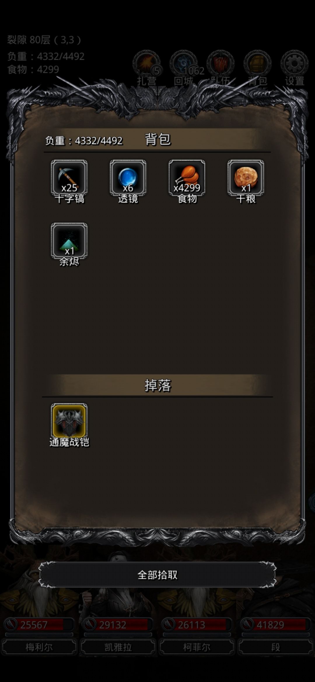接下来就是恶魔大君了,说实话恶魔大君我感觉难多了,研究了几天没拿下才跑过来试试石像鬼,没想到直接拿下😂,煞匕明天才能换,柱子不着急升了,后面看看能不能单柱过大将😇