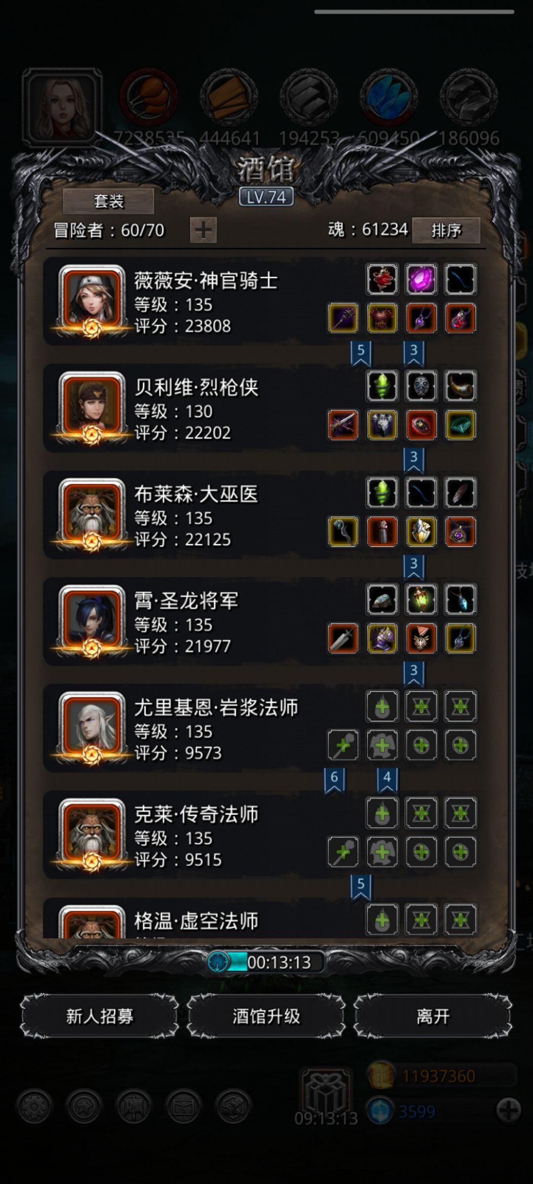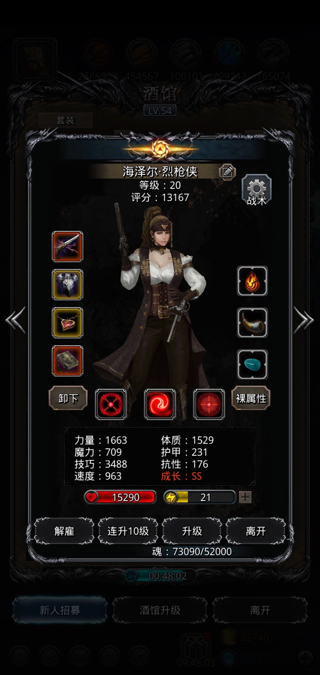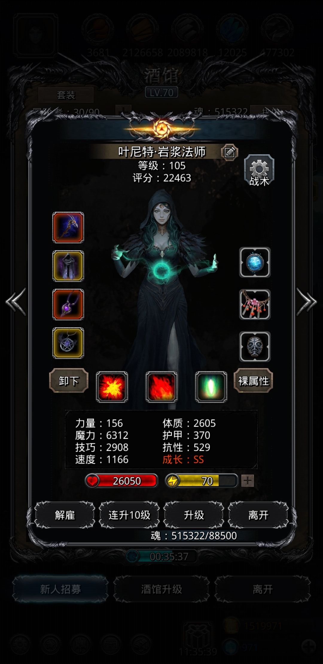 柱子:枪34,刺客35,战士33,法师48,上场的4个柱子属性加得很少,也就蛮子80开了等级上限,但等级都没升满(零氪穷b被迫低配)