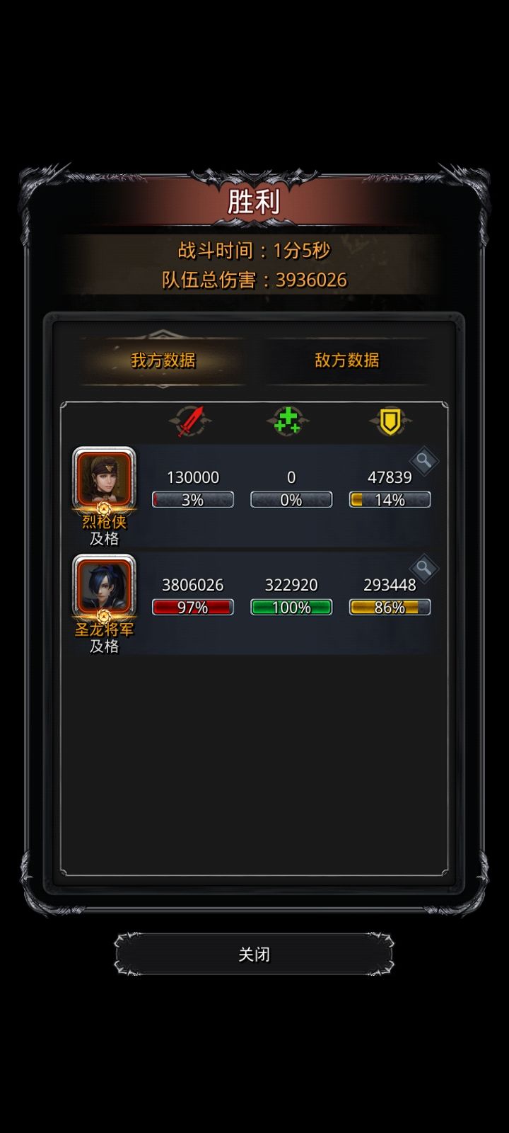 夜莺的锁甲属实是可穿可不穿,主要是魔伤疼,大眼甲也完全够用了,补的10命中真香,一把过。 巫医枪手圣龙带火环纯负作用,不用空环是因为我实在没有,稳扎稳打的玩家用空环通过率会有提升。 巫医尽量维持夜莺回春,血量不危险就轮流奶,自己把握,些许刷脸。 圣龙技能全开 夜莺13循环 独裁放生