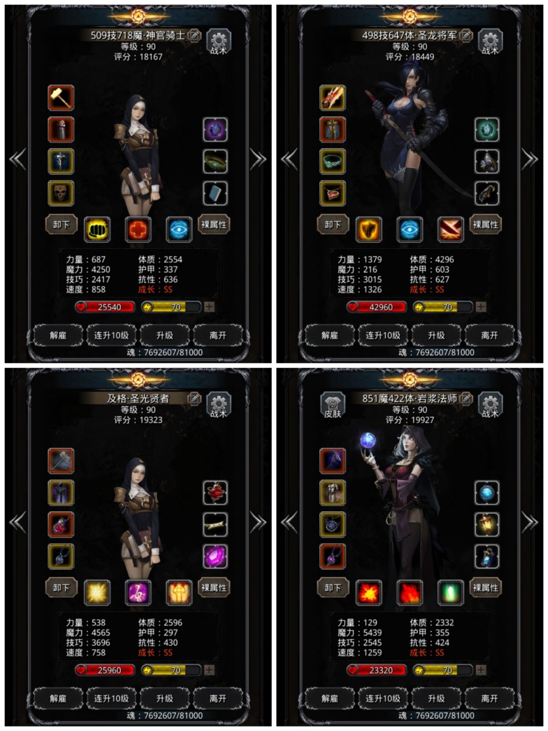 这套就是wiki上面的。神官只奶黑骑,虚空只减力量。