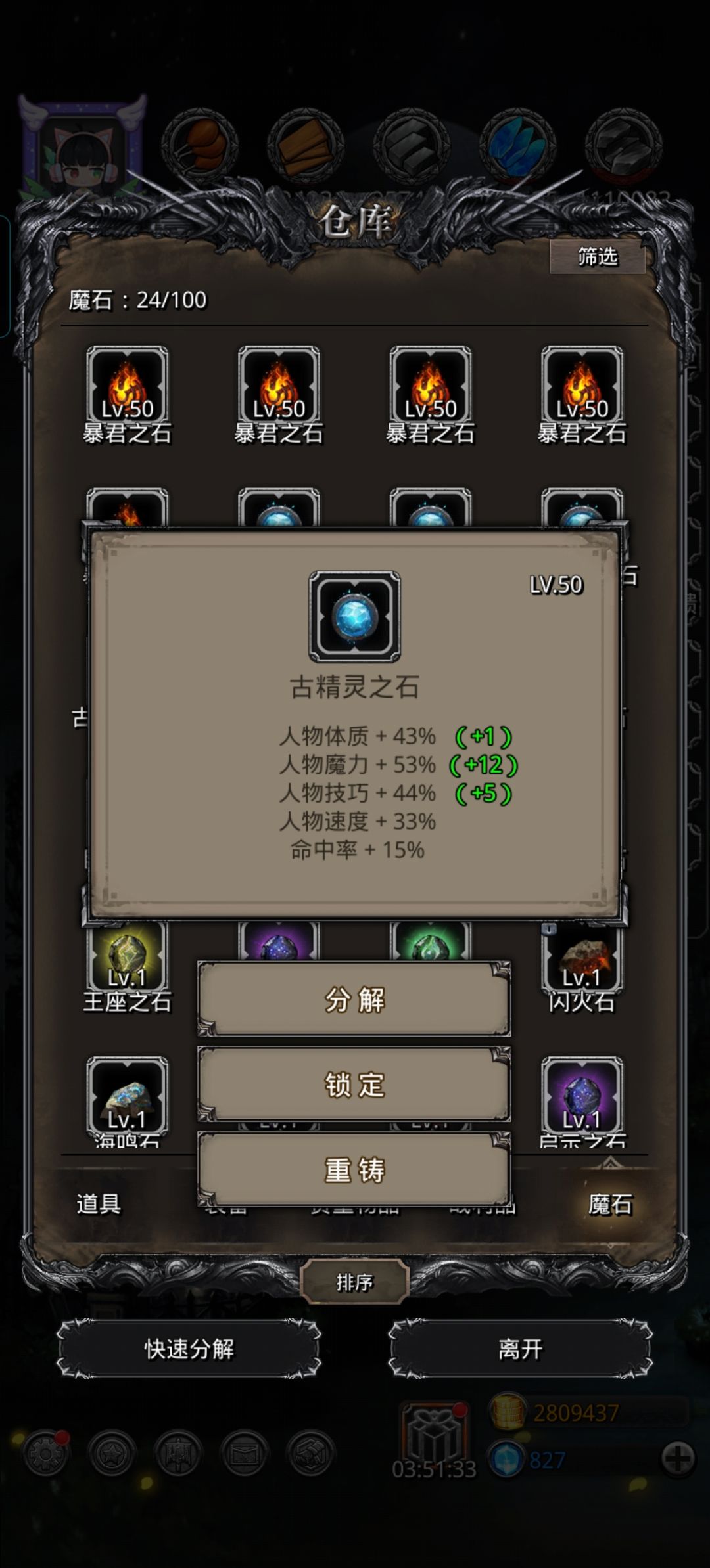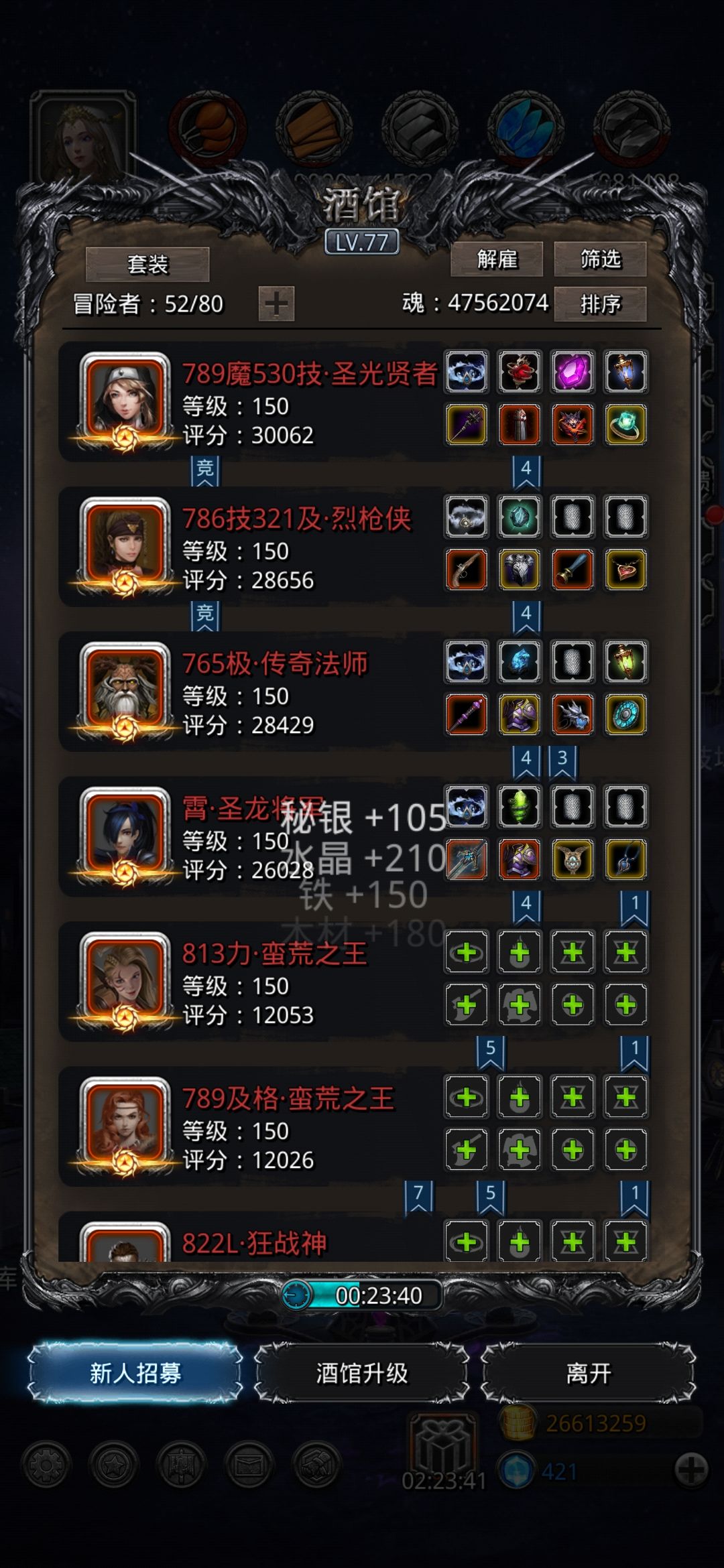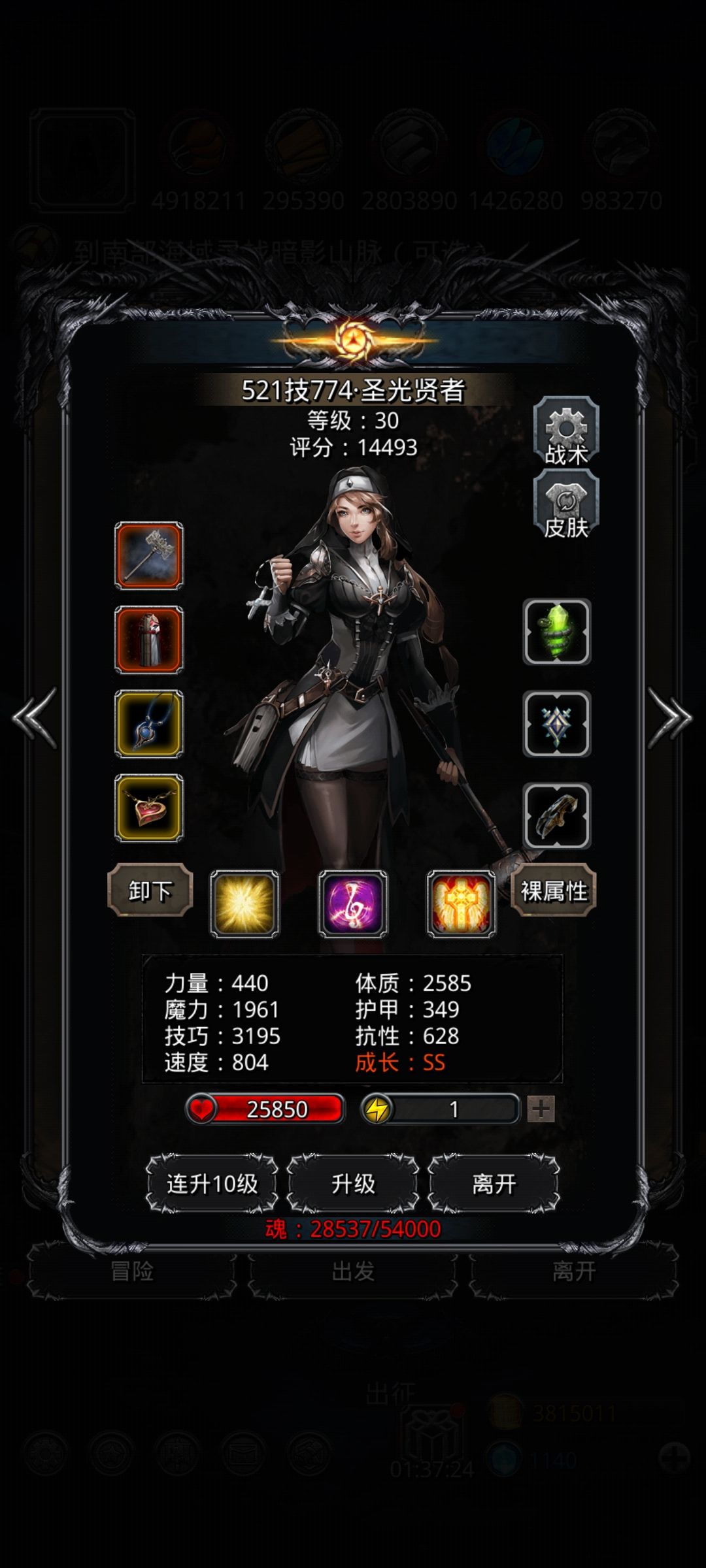 唯一没打的盗魂者是因为没魂升圣枪。 总得来说24难度不大,内容还是不少,算半张水图。恶魔老者虽然难,但是抄抄攻略也就过了。 阴影魔将刚开始打可能不熟悉操作,需要多熟悉一下。 最后贴一下属性和配装,战法枪祭四柱80。 巫医55/85开局奶圣龙挂机。手动操作神官和圣龙刷专注补反击嘲讽。