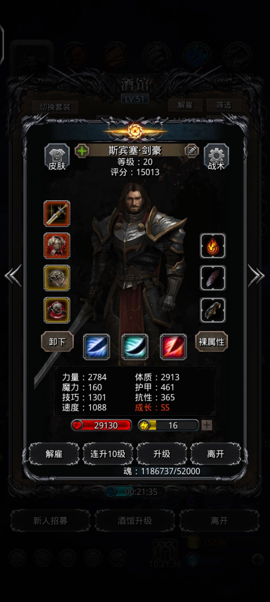 图30主线boss——黑暗暴君——老苏 分享稳一点的配装,从wiki上搬运,实测较少刷脸。 火刑的配装不用看,虽然我带的150无视魔石,装备97命,7661力,一刀47w。第一把就差23w伤害就过了,但是没有战鬼输出差点意思,很刷脸。第一把要是过了我早吹火刑了🐮🍺😏 这里推荐夜莺打法,伤害很高有回复,2分多结束战斗,跟打战测一样。夜莺中减技就手动暂停,祭祀也是。操作手法wiki上其实都有,但是这个方法靠谱一点。刷脸总共20来把其中大部分是用火刑,夜莺用了3-4把吧。如果有更好的建议可以留言,一起讨论下,希望都能做低保户,开心挖矿😄