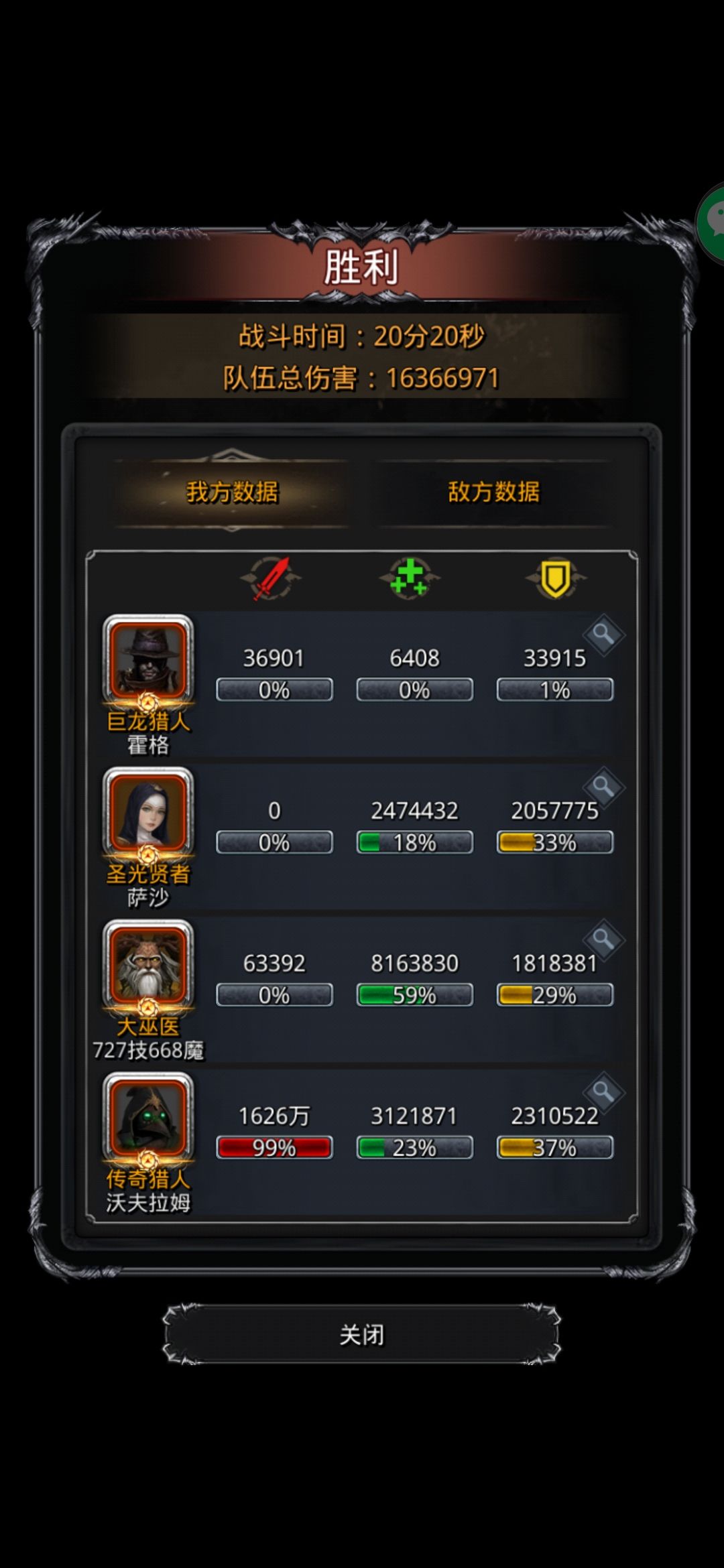 这套两次过 拿斧头前后都试过几套阵容,无一例外不是太容易死,就是伤害不够。这套稳定点。
