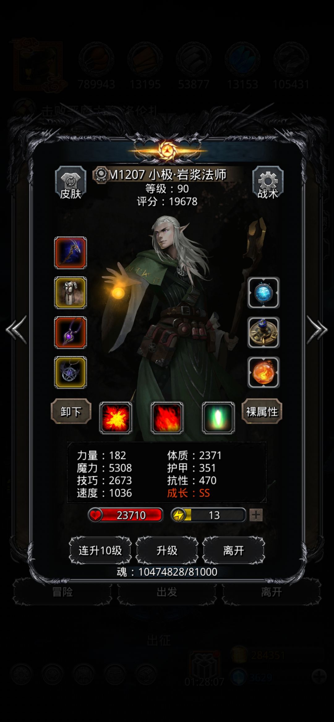 酣战了近一百场,中午过了,这个配置还是刷脸的,升龙和神官有概率暴毙,如果不暴毙,剩下就看火法的了,火法一共加技巧三次,开局一次,40秒一次,90秒一次,加完技巧手动给圣龙补反击,可能好几次就差圣龙没反击的那两下伤害就过了,战士塔65,有四个塔80 终于可以干裂隙75去了