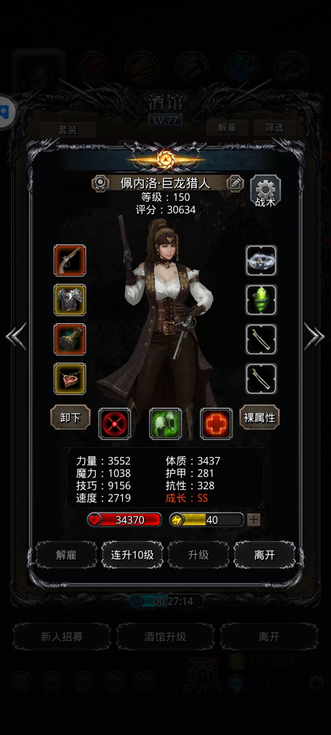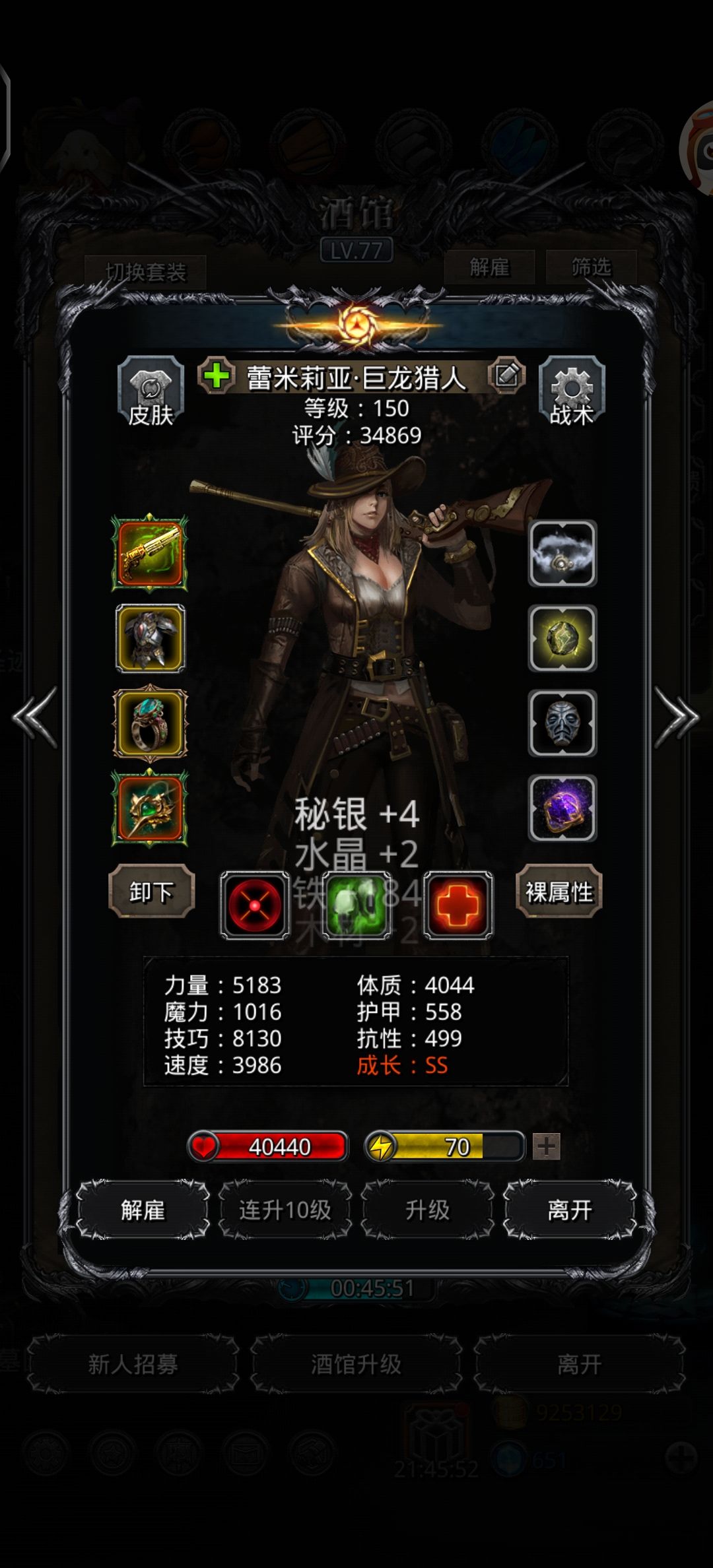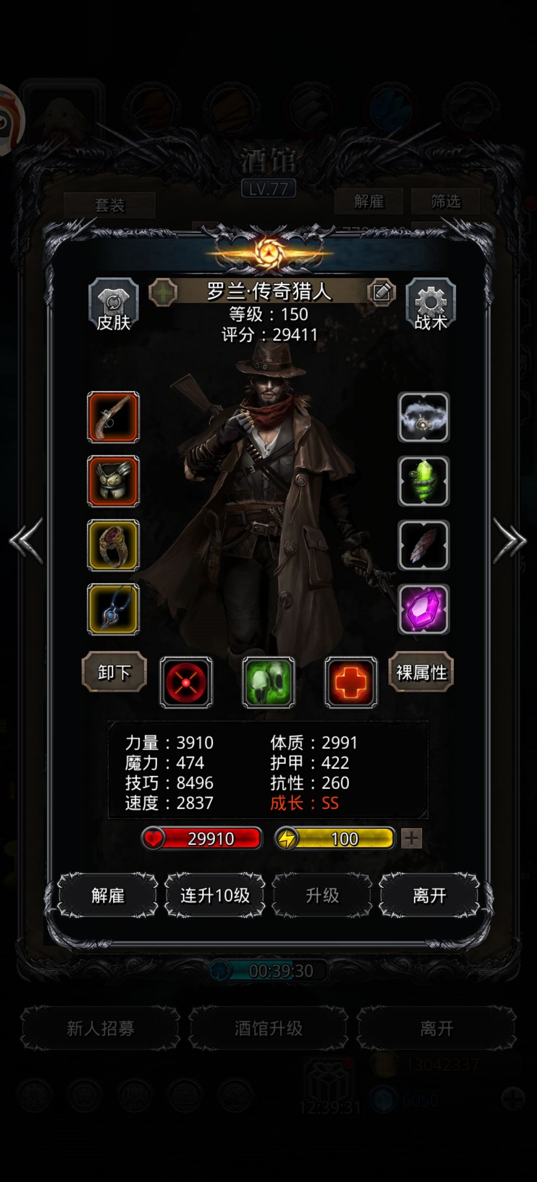 刷脸怪 统领猎:技巧,单吸,黑火药 最高 伤害:157696(1分钟后暴毙[表情_泪目]) 圣龙:体力技 双单吸 技能全开 打最高 土 体技多人物格挡环 ⭐️⭐️力速比<2,不然自动接不上 (前30秒剑特效多会暴毙,正常的[表情_斜眼笑]) 扛不住就换黑骑,伤害压力大点 暴君猎:堆力量伤害,锤护甲 伤害:797382,暴君甲1181674 ⭐️⭐️⭐️主要伤害来源 出俩次特效不暴毙必