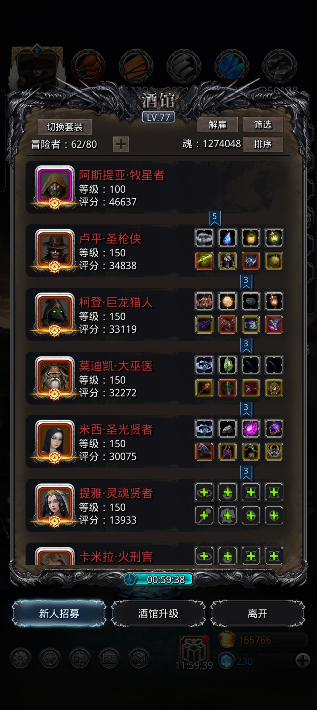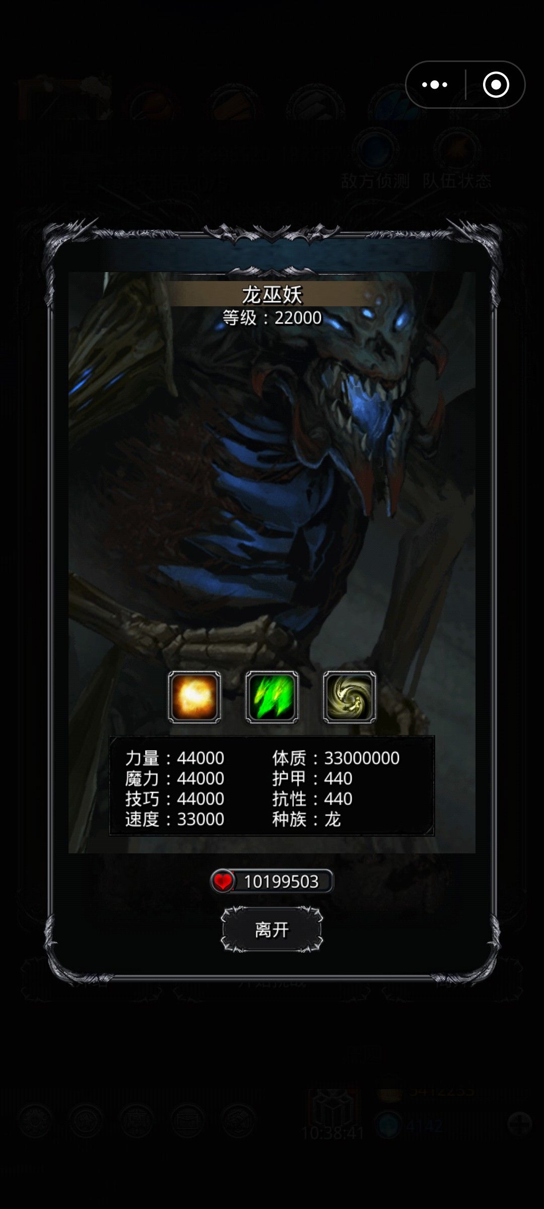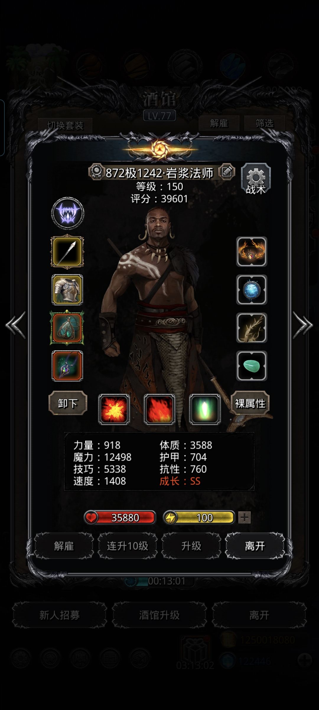 被虐了百来回左右终于过了,用的wiki备注阵容,这一套应该是算用的最稳的全自动挂机了,赌开局物攻和在没有海兽特效boss连续两次物攻期间巫医有一次坚盾,其他不知道为啥祭祀老暴毙 配置属性: 圣枪: 10078技,3756体,10%伤害空 龙猎: 8530力,3805体 巫医: 5494魔8143技,4176体,体技水环,面板60回复,战斗速回10800秒回9100 圣光:6580魔6787技,45