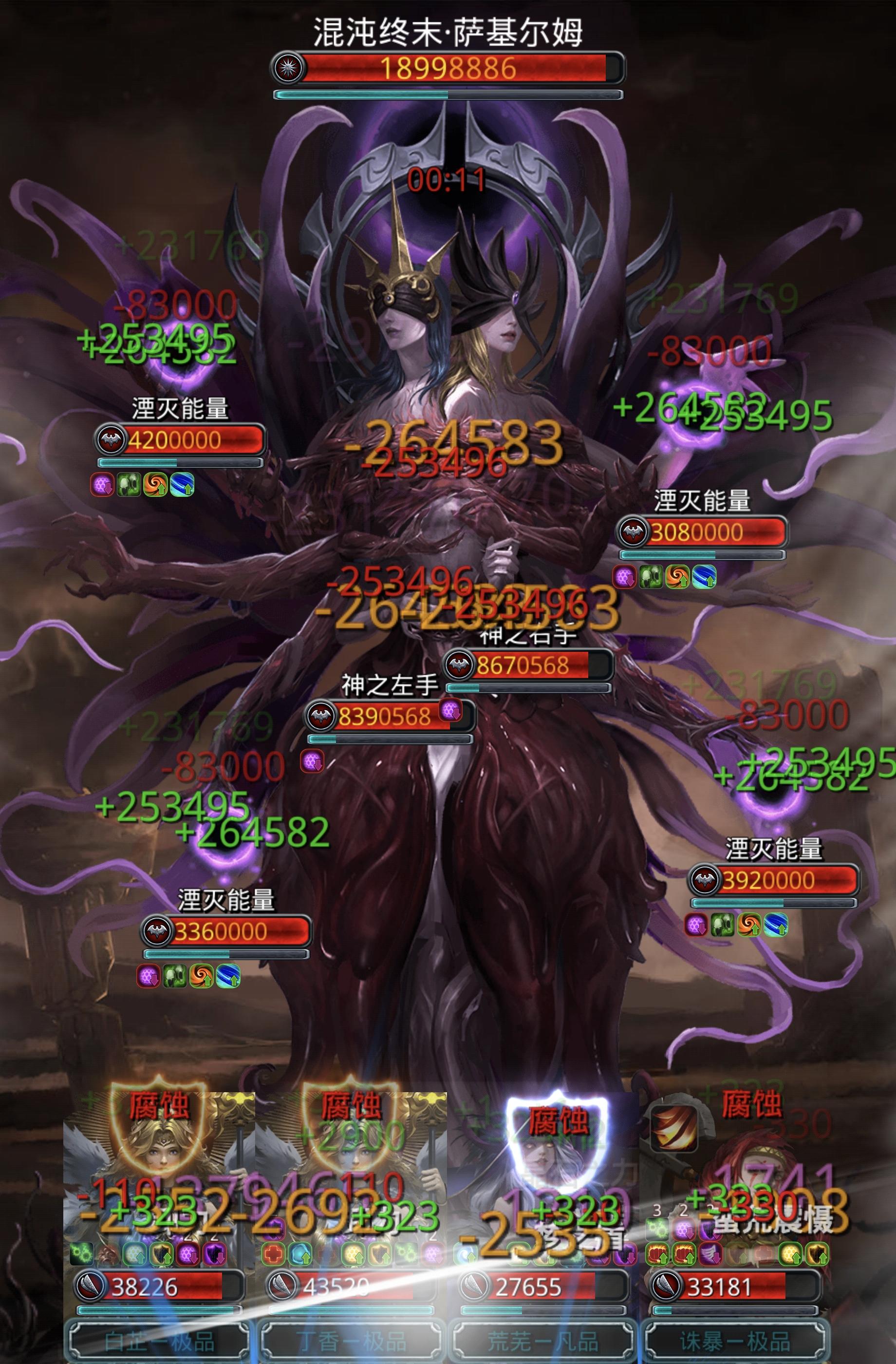 基本上是在抄作业,没有想出什么好办法,不上圣光似乎很难打进奶线。 算是比较吃输出的一层。 再讲一遍机制打法。 1.小怪打法 小怪405万血以上攻击,伤害很高,基本扛不住两只的伤害,405万以下自奶。所以开局火法狂战先发单攻尽量压低一只小怪的血线。压低一只到405万以下后只靠夜魇就可以让一只小怪一直自奶,此时可以让火法补奶(基本上压低一只仅需要一轮攻击,所以就设置100奶队友)狂战设置成攻击剩余最高