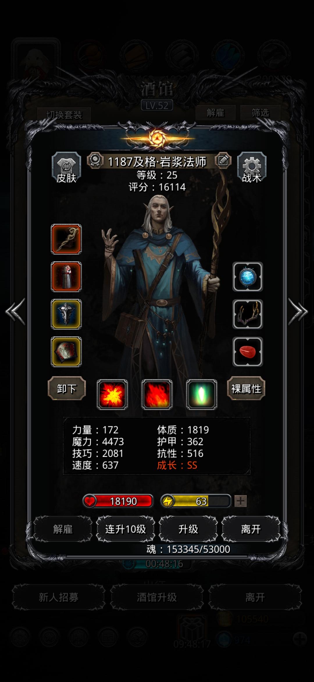 如图属性,BOSS全程物单攻都是1,只需要鳞甲抗性够高抗住魔攻不死输出是完全够的, 传猎10技加单吸,黑火药总生命最多 诡术二十技巧先发加4回复,先发减技巧最高,手动右小怪,自动最高,手动右,循环。 虚空星国加单吸,开减力最高 蛮子单吸加力量,单攻最高