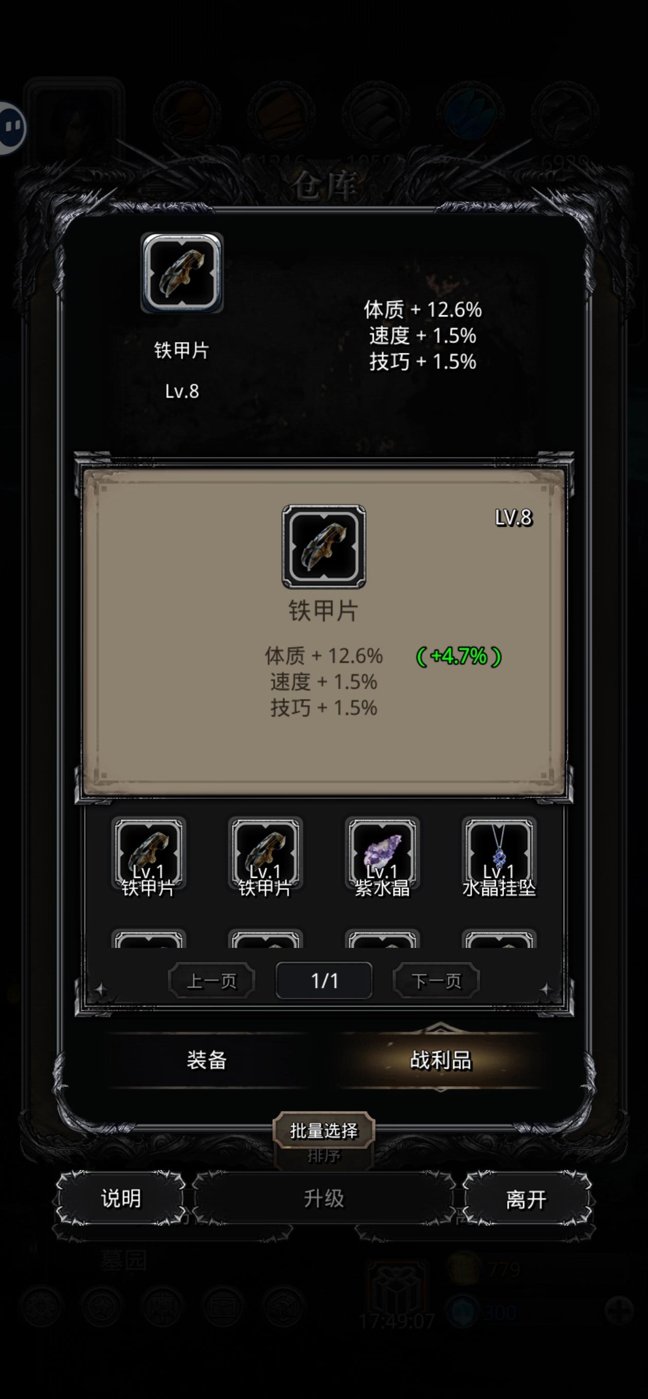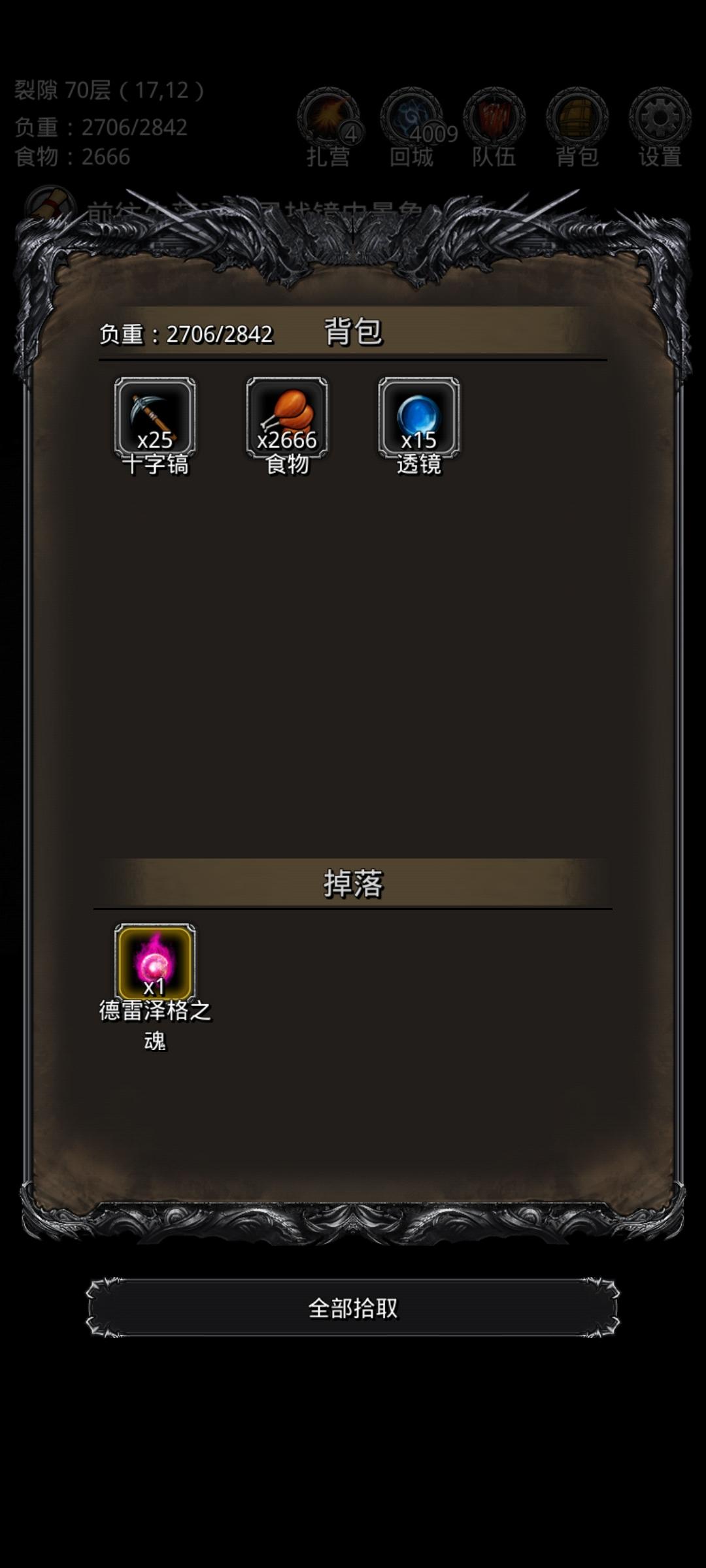 配装如下 刚开始没有双龙猎试了两局夜魇 伤害不够 硬着头皮升了个龙猎一把过了 只要祭祀加独裁猎技巧能到1800左右抗性就行 自动即可