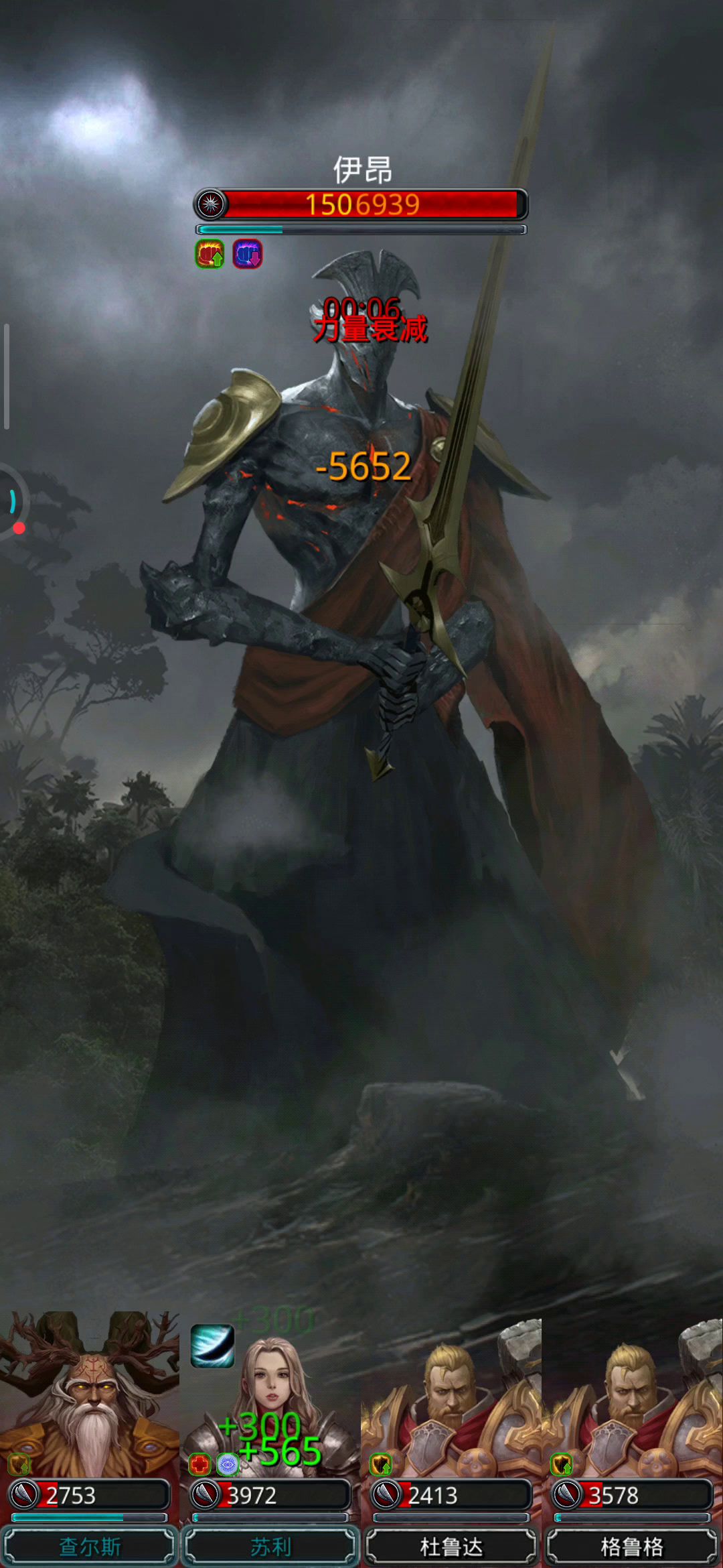 楼主开荒时的进度:遗迹9全通关,战力测试ss-已过,裂隙61已过,半门已过,主线卡在图19的3300力量,锻造90🐔。 【参考操作视频】 【伊昂属性图】 技能①:单体超高额物攻,暴伤62.4万。 技能②:群体高额物攻,暴伤10.14万。 技能③:(伤得越重打你越痛)在每个整分钟的10s左右释放一次不屈:提升(1 + 已损失生命值 * 0.0035)的力量,持续60s。 分析: ①打伊昂前有一次30