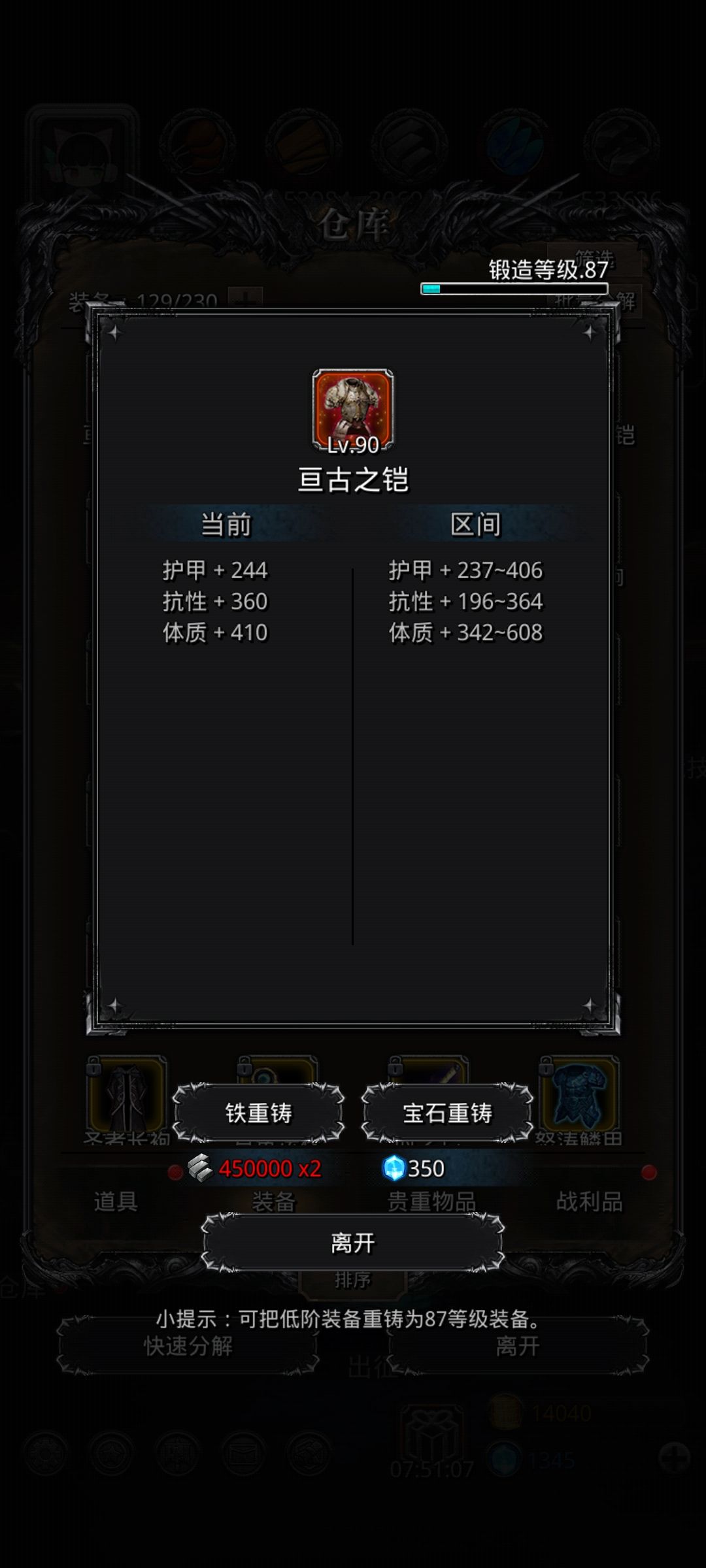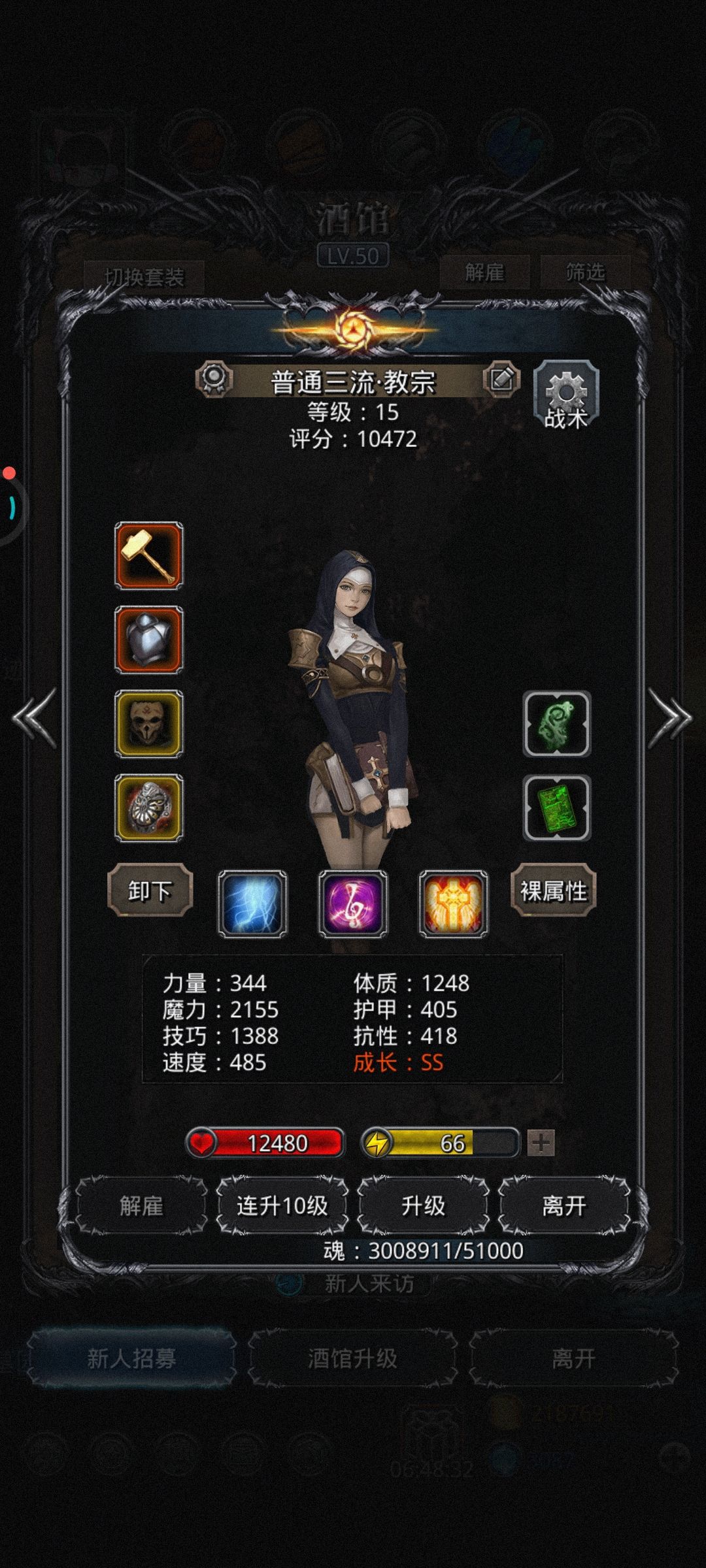 从下午两点刷到现在 ,复活都用掉35万魂了。蛮子最好用时斧加流血甲,我的是因为流血甲没有高体的才用的,命中最好五十多以上 ,要不演的你心态爆炸 。开局赌单攻,巫医65/90自动,巫医甲最好450以上,可以用板甲代替,血16000左右,自己看四分钟左右群攻多少微调 。我的战利品除了蛮子是命中的 ,其他基本都是护甲和体质。