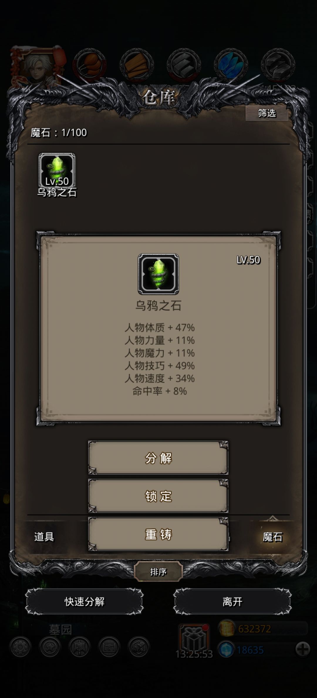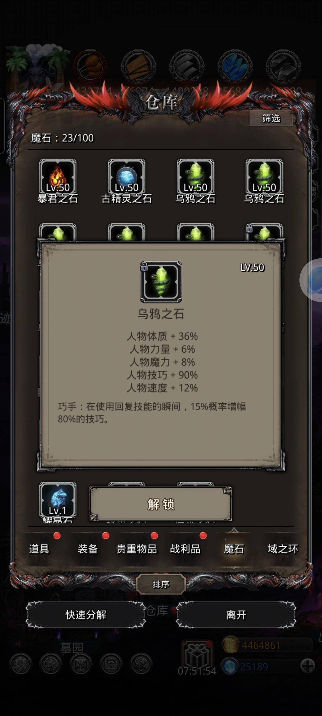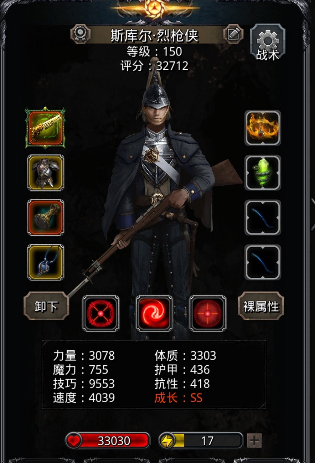 狂战带的力量魔石 补命中带了技巧战利品(有点丢伤害) 所以有点极限 好在一把就过了 推荐带速度魔石 剑豪推荐双单洗吸 目测单吸血连续不触发星辰会暴毙
