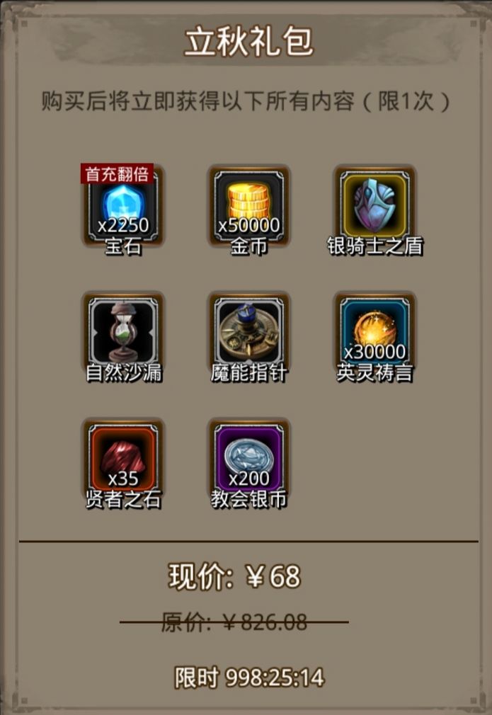 战利品礼包分析——立秋礼包