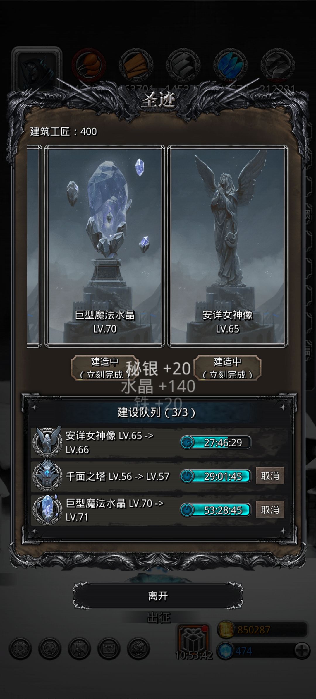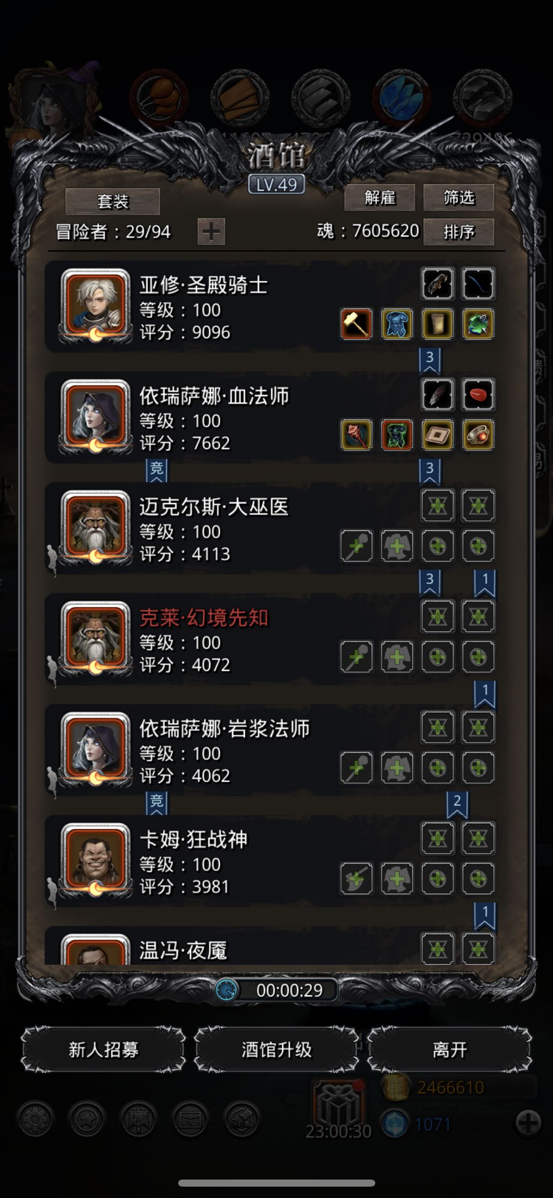 图23恶魔门终于过了,卡了两个多星期,今天花3000万把法师圣迹升满 圣职97 其余80。今天打了好多次,有一次差两万血 气的我差点把手机砸了😭😭