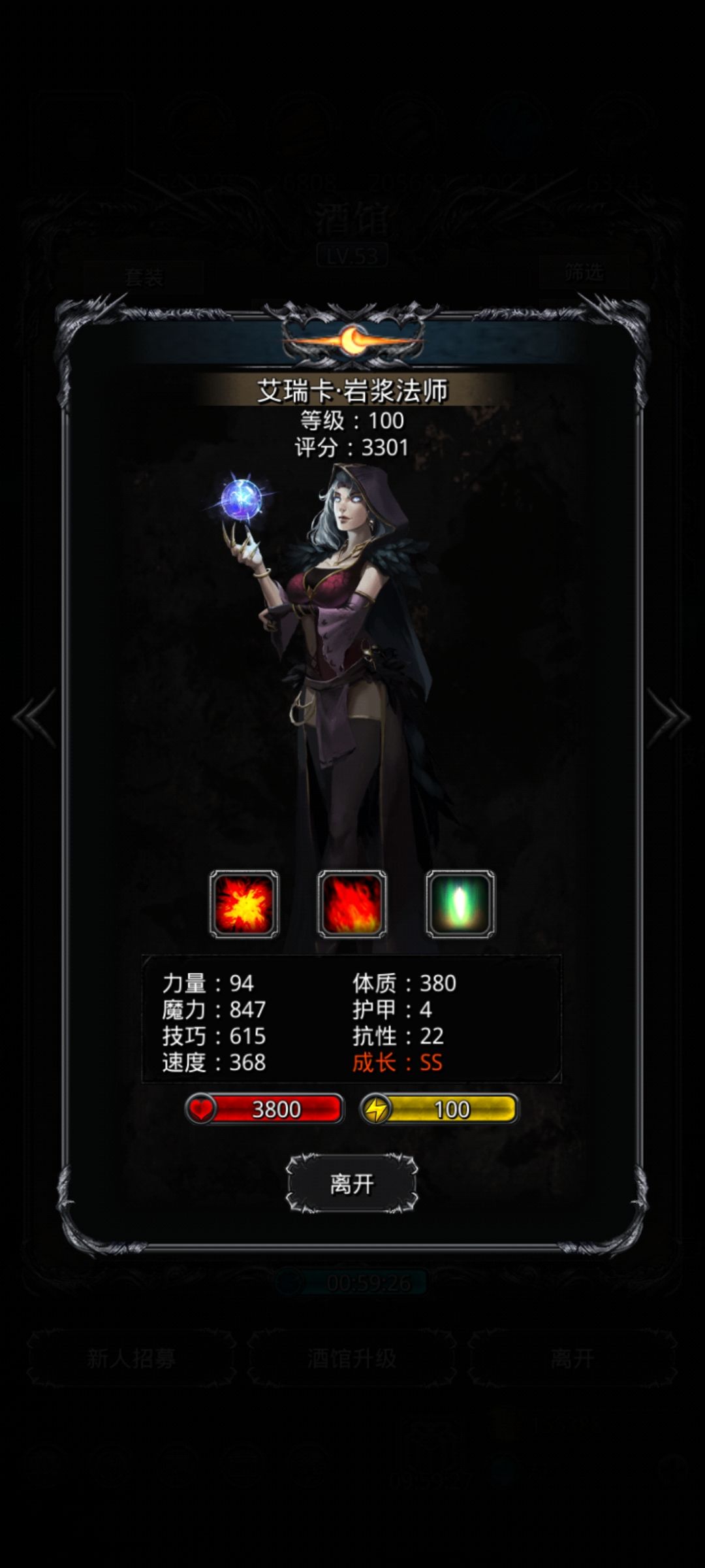 依靠wiki的火法刷脸打法打了两次每次都是时间不够没打过,也许是没有满足火法1500+魔力和夜莺1500+技巧吧(装特定装备很难堆高魔高技,而且圣者长袍技巧太低,所以没给夜莺用) 攻略: 1.火法优先堆最高魔,配装带冥王杖,祖龙袍,夺魄戒,使徒披风,手动攻击同时保证技巧加成(可以先设置终始奶,然后手动攻击四次再自动,然后反复) 2.夜莺优先堆最高技巧,配装带流火,诅咒戒指,其他全带技巧装备(有璀璨
