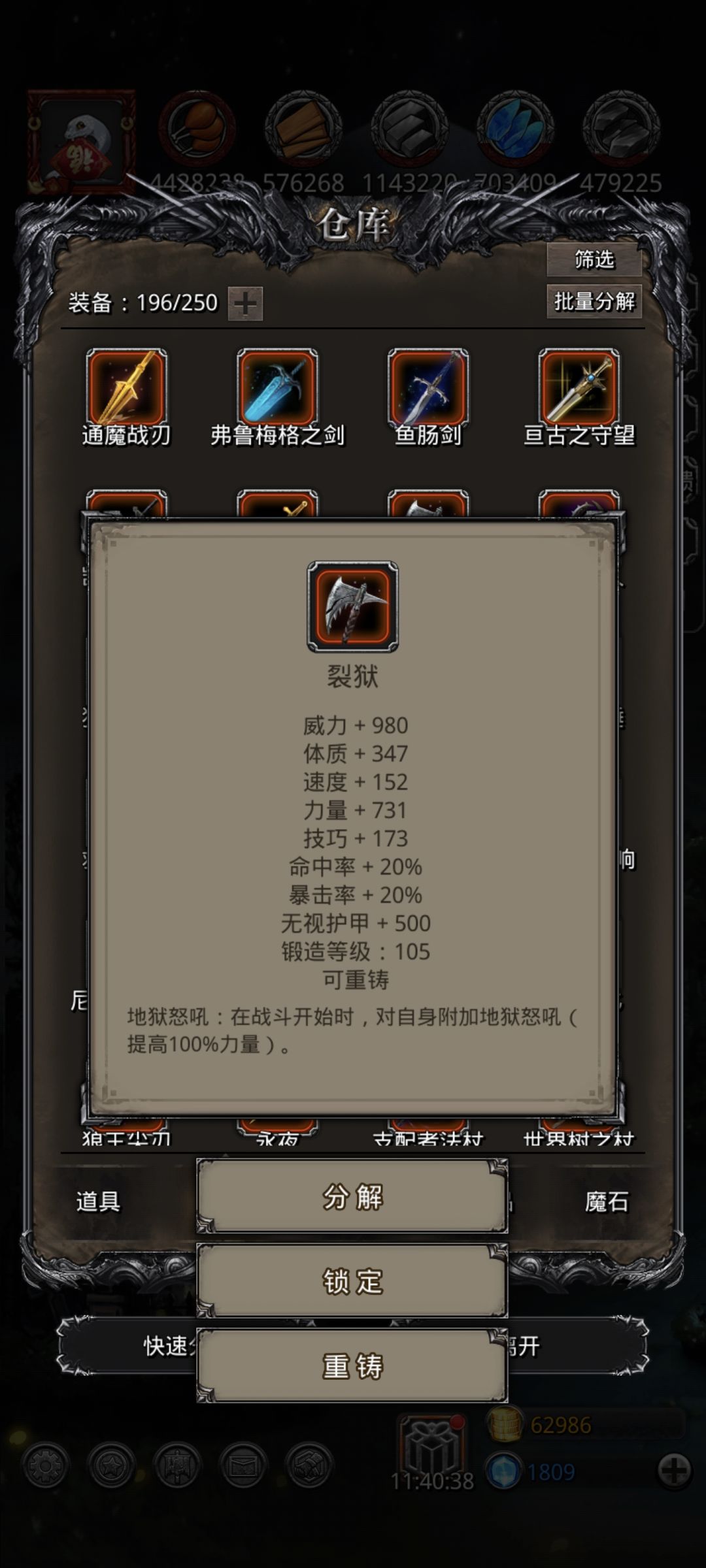 裂隙47一次过。 迷宫只刷了一个蓝宝石戒指.火法带的魔剑士和龙晶坠(._.)