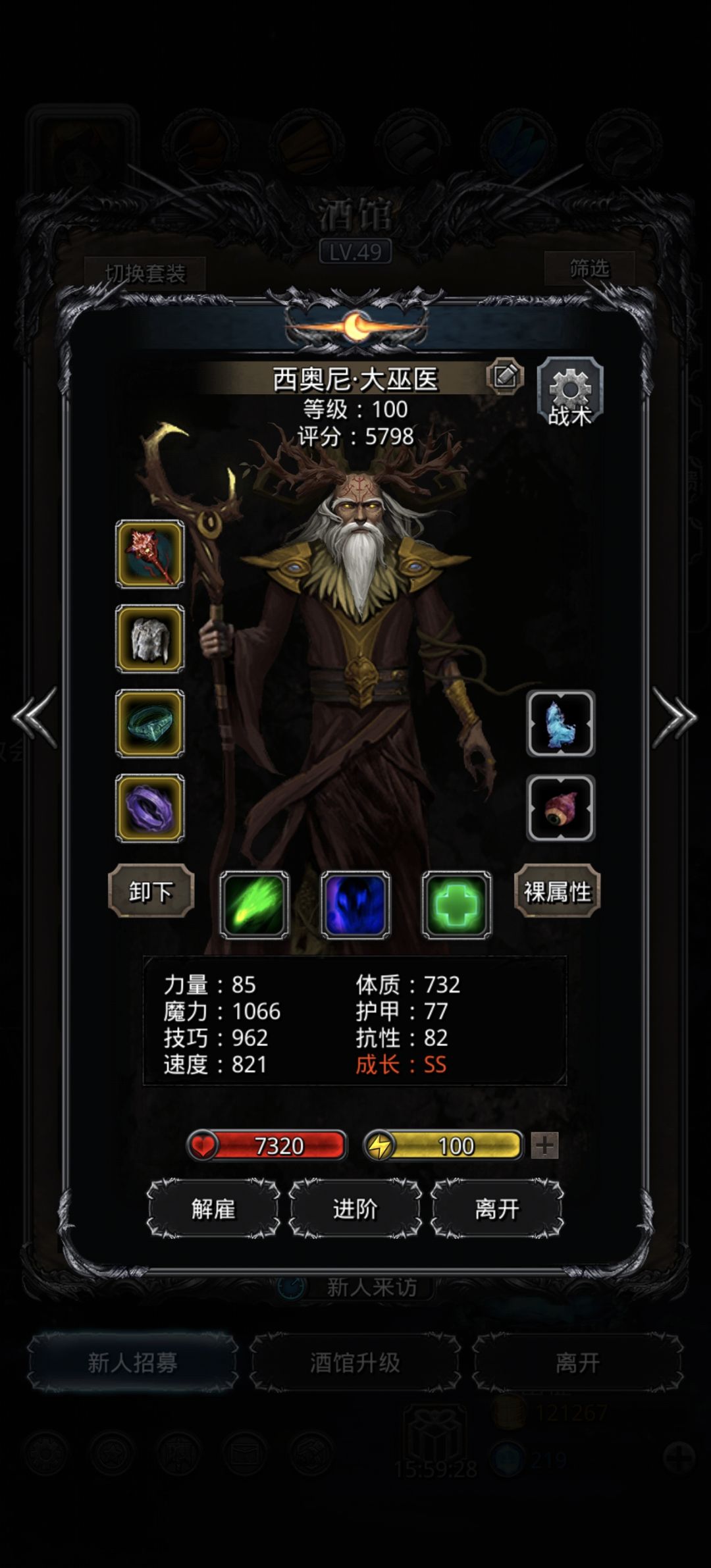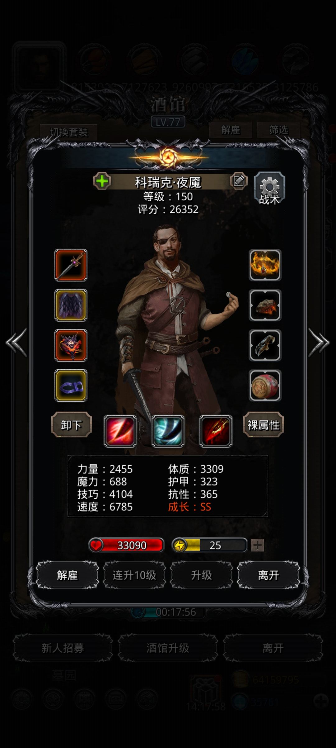 今天刚过菜菜龙,需要沙漏,才想起要打精灵难度5。按照wiki攻略配装,虽然能抗住,但是蛮子和剑豪技能冷却太长,吸血吸不回,尤其是蛮子,不出特效就容易暴毙。因此才想起用永生戒 指给蛮子。蛮子开3技能,面板总命中86.8,战利品带的是技巧10吸血和9.8命中的鹰眼,77力量魔石,加15命中。3技能总冷却5.3秒。 剑豪开3技能,面板命中94.2,3技能冷却6.1秒。代了个9.2命中鹰眼,和荣誉商店的2