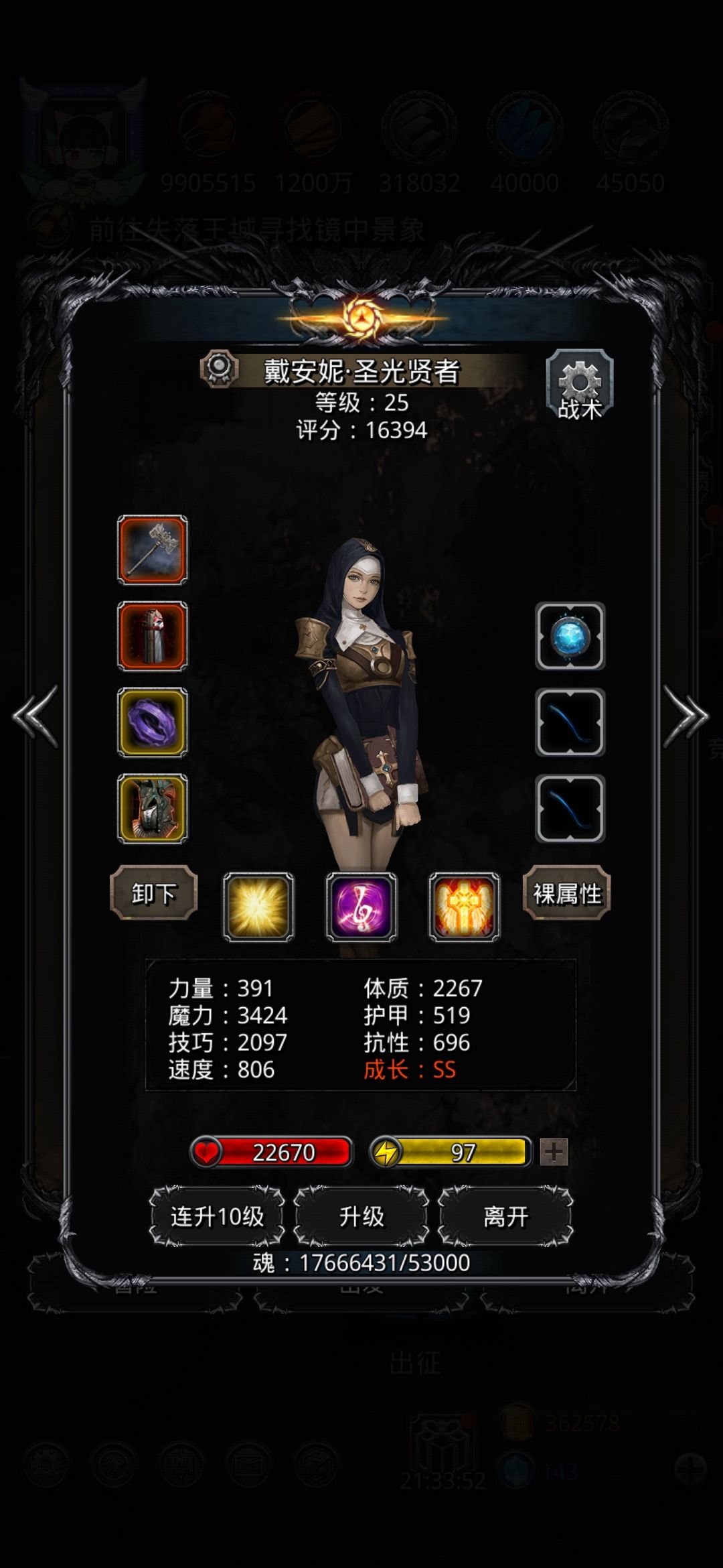 用的攻略一,没食物确实麻烦,给火法穿了群星甲,外加给神官扎营换装备凑力量才够的。只要严格按照战术设置手操就行,很好过。 明天就能战测1e拿萌新勋章⭐了。 遗迹18也在推进,用的18-3,现在考虑要不要转用18-1,感觉是没必要了,到时候周日把剑魔换套装杖火法就行。