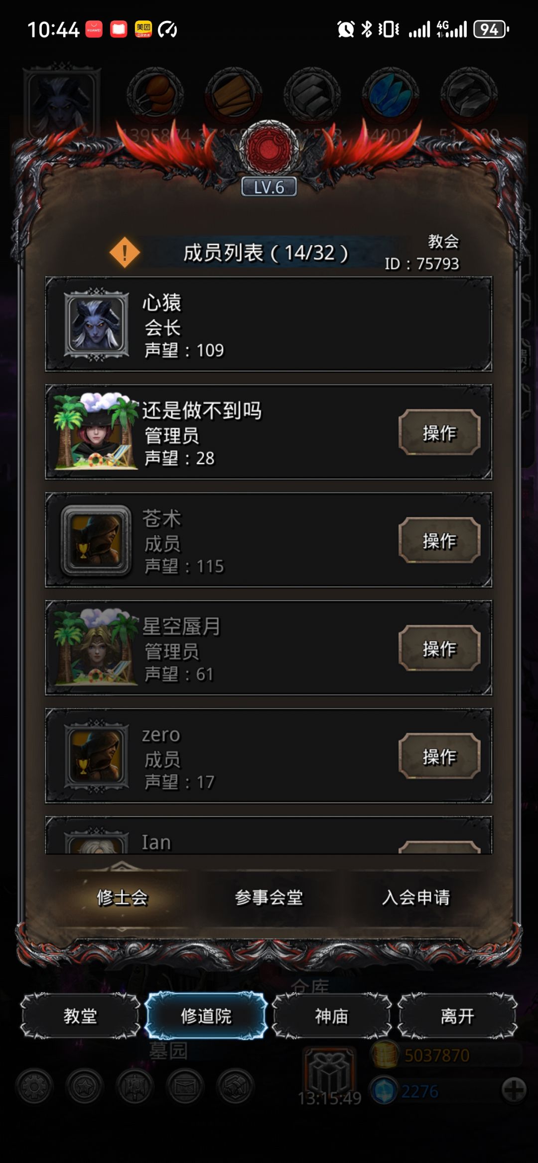 图3过了(29,15)据点后就能开启教会系统,在图1所示位置。进去后有随机几个教会可以申请,主动选择教会就是点击图2的“输入ID申请”,如图3一样输入指定教会ID申请。 有的新手小伙伴不知道怎么看个人昵称、ID这些信息,点击图4游戏主城界面左上角的头像就能看到了。 然后加进教会,请注意,不要捐赠,没必要捐赠,真的不用捐赠!因为性价比太低了。教会-神庙-个人任务,每两天更新一次,完成里面的简单任务可