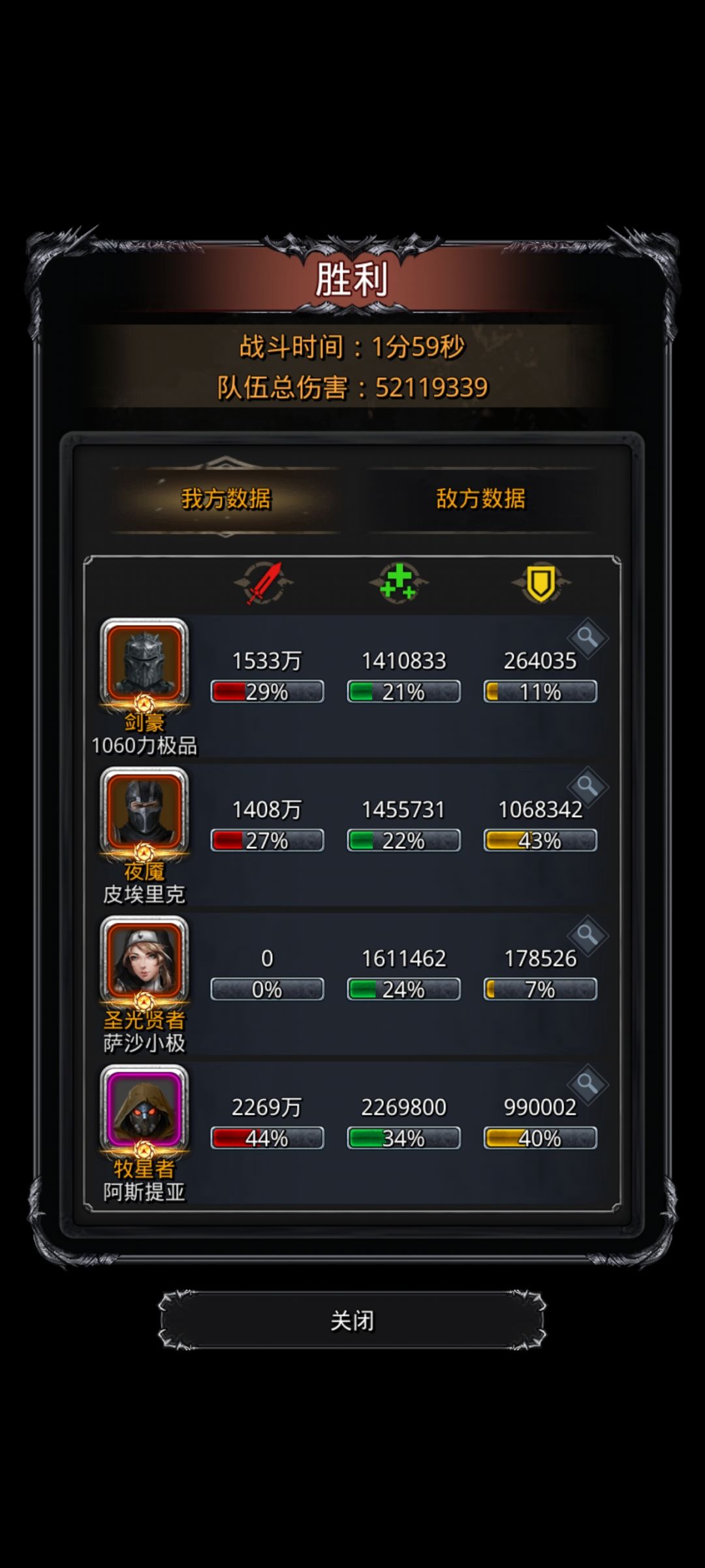 #地下城堡2黑暗觉醒 挂机把前两个小怪打死以后,就把火法和巫医调成攻击总生命最高,巫医的晕改成毒,然后继续挂机就行,火法的战利品可以换成命中的,我是魔力战利品miss好多,不要怕时间不够,我打完都剩了一分多[表情_微笑]