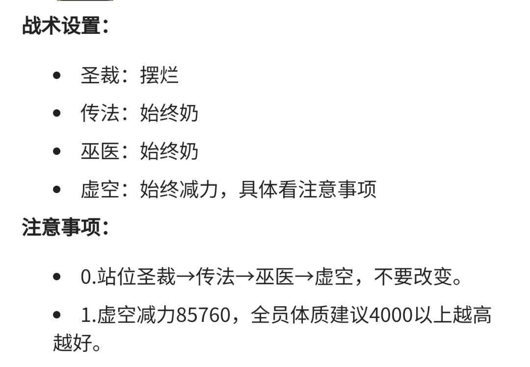 BOSS:3750甲抗,不吃负面 单体减抗,全体1w dot 小怪:减速3000/魔法易伤 ⭐没啥压力,属性配一配,直接挂机过 圣裁:技 巫医:技+回复 圣光:技+魔 ❤️容易减员的减魔加技,如体技多人水环 ❤️最后反不死的,魔技多人水环,减技就完了 圣龙:体+技 ❤️容易噶的用水环