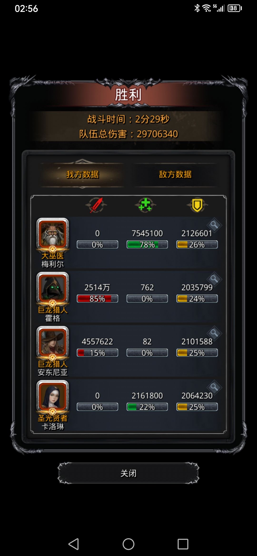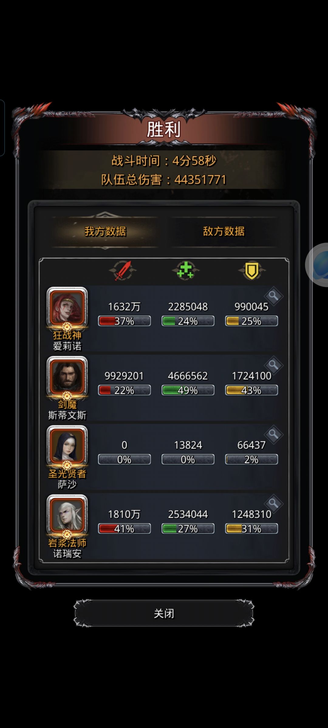 打的真折磨人,第一次奶错30分钟暴毙,第二次走神27分钟暴毙,第三次17分钟圣龙莫名暴毙[表情_捂脸哭] 第4次通关手动半小时,挂机10分钟(太折磨人了)。 总结要点千万千万千万不能奶错人(前5分钟奶错没啥事)奶错就可以下一把了一点容错都没有(奶人顺序圣龙→巫医→祭祀顺序可打乱但是5分钟后必须按顺序来)。1带2我他喵来了!