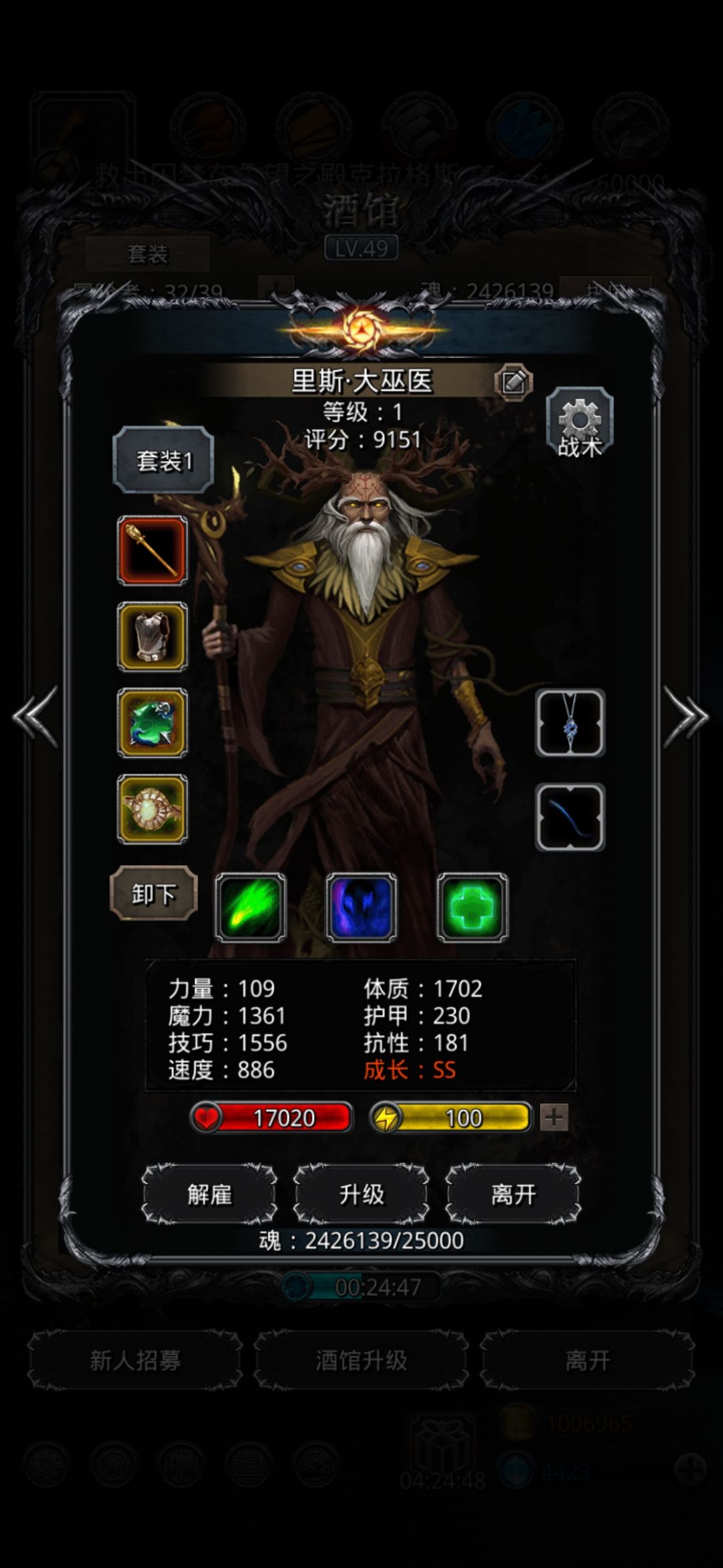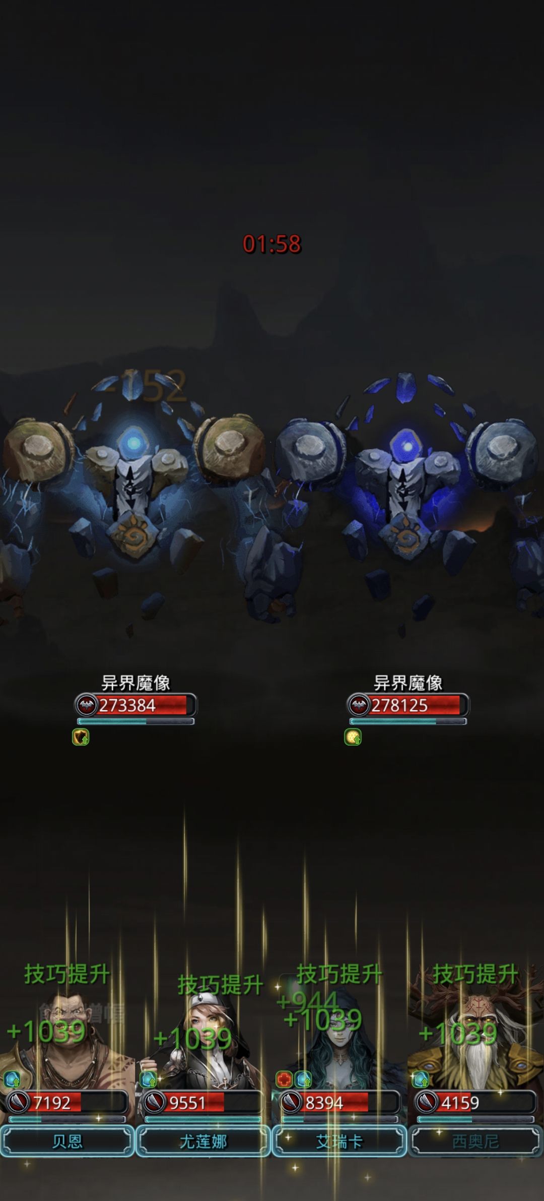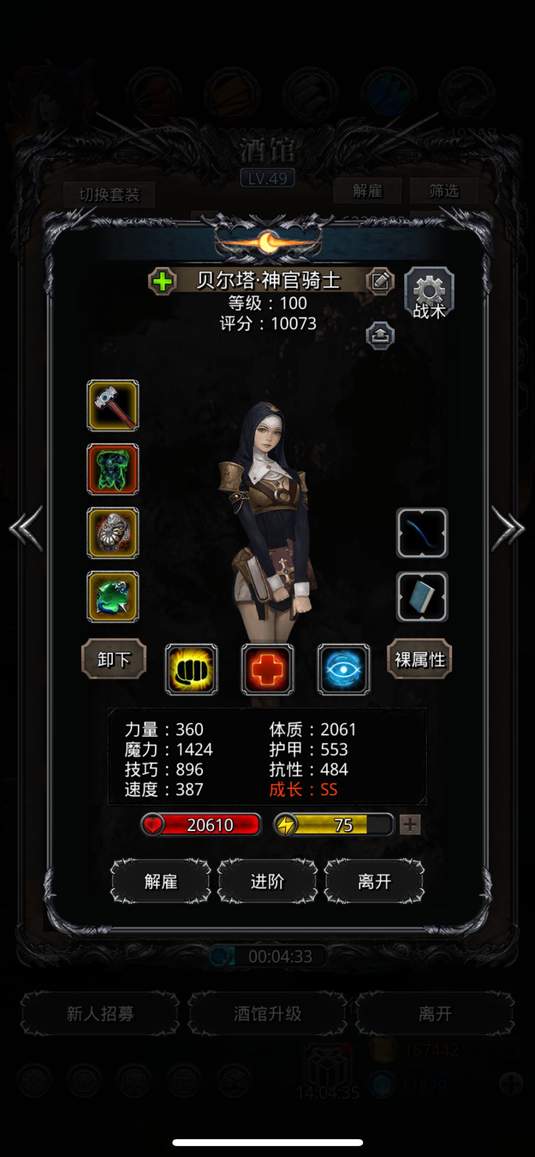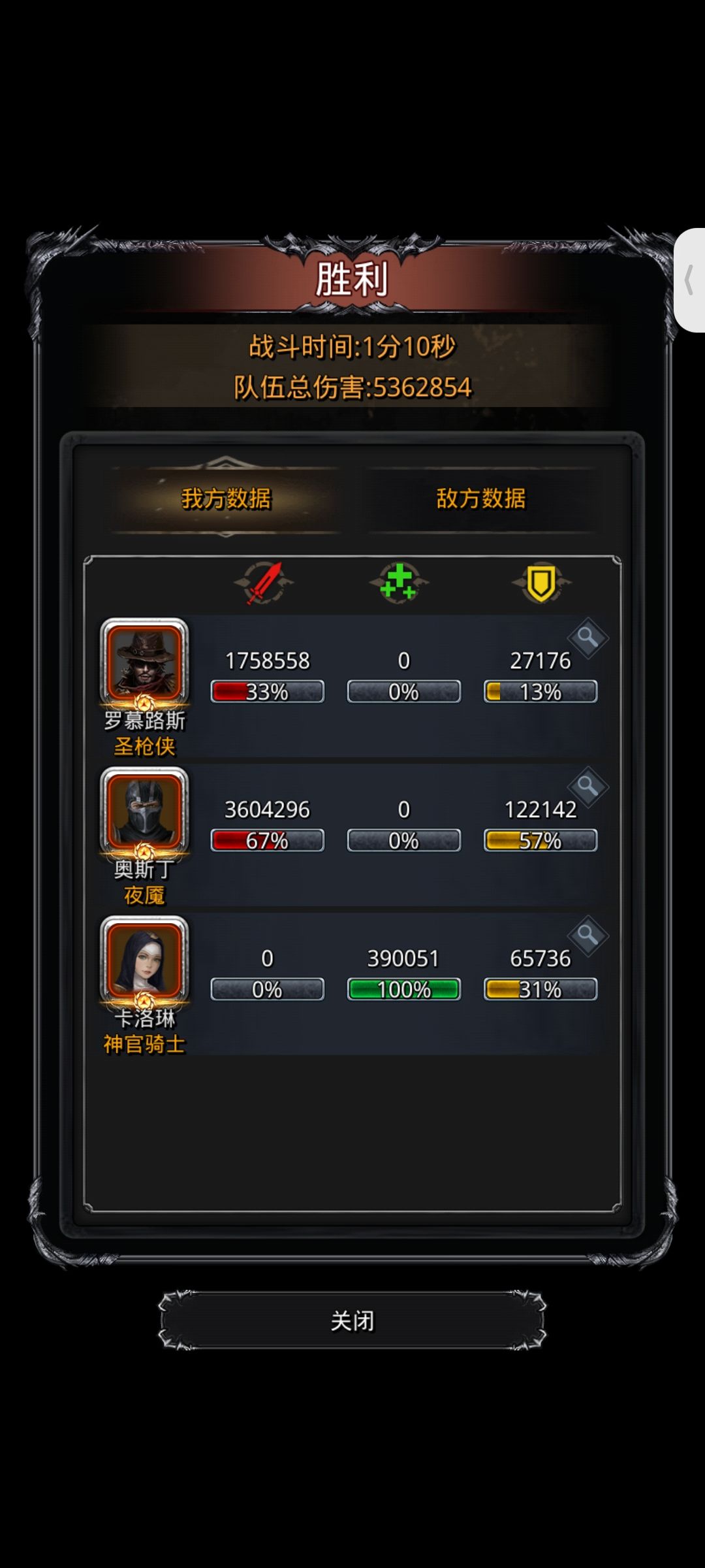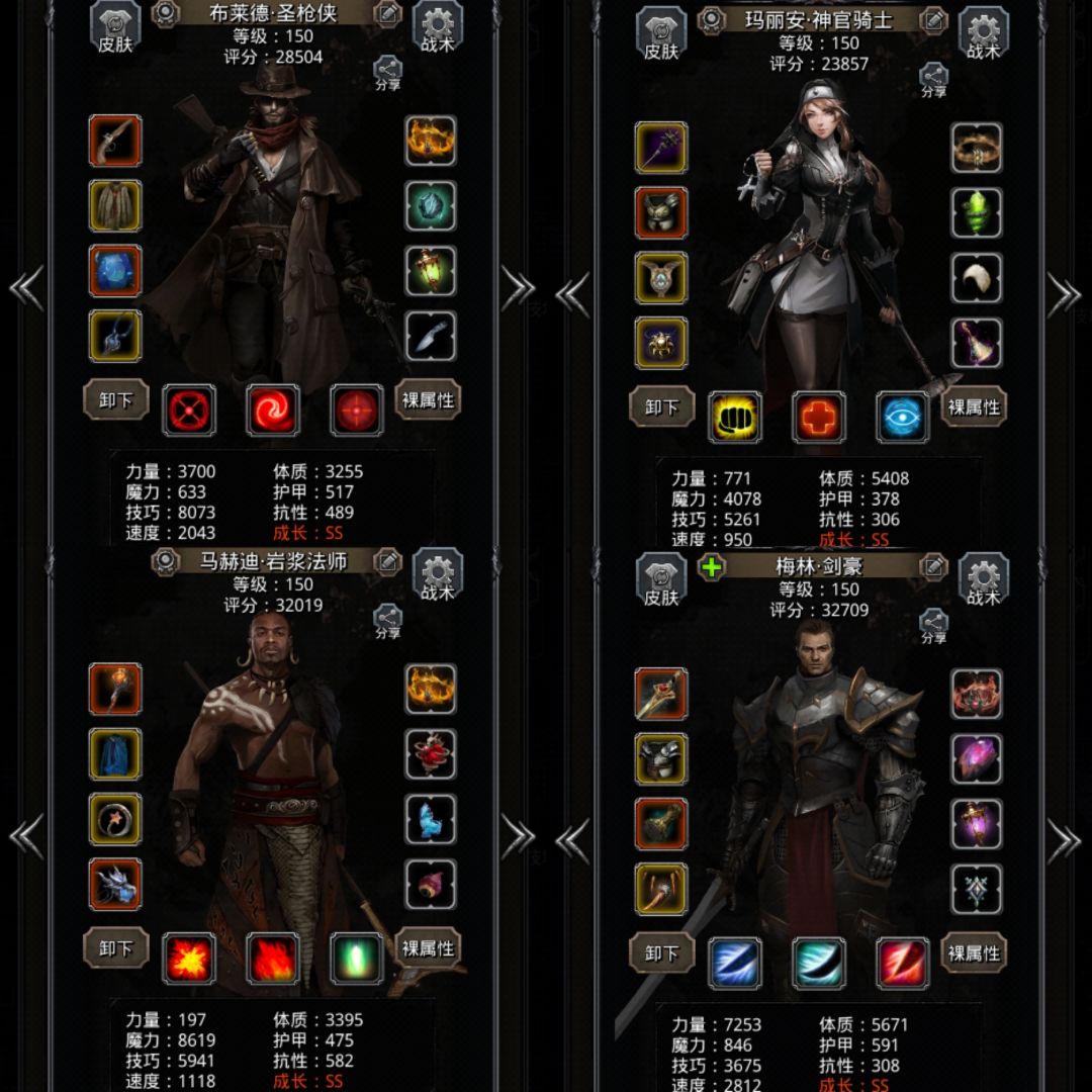 这个是0氪,没有黑暗水晶,每天收菜用的。 算是高配版,我通过图17,裂隙过51,有兴趣可以看看。 没什么好说的,wiki攻略都有,不过我用的是圣枪,不是蛮子;还有用的圣殿,因为力速比更好。法师和祭祀总奶量要3000+以上,然后尽量都堆高抗性。 祭祀法师始终奶,不攻击。 圣殿始终嘲讽75奶自己15奶队友,不攻击。 圣枪只开2。 然后就全程挂机了。