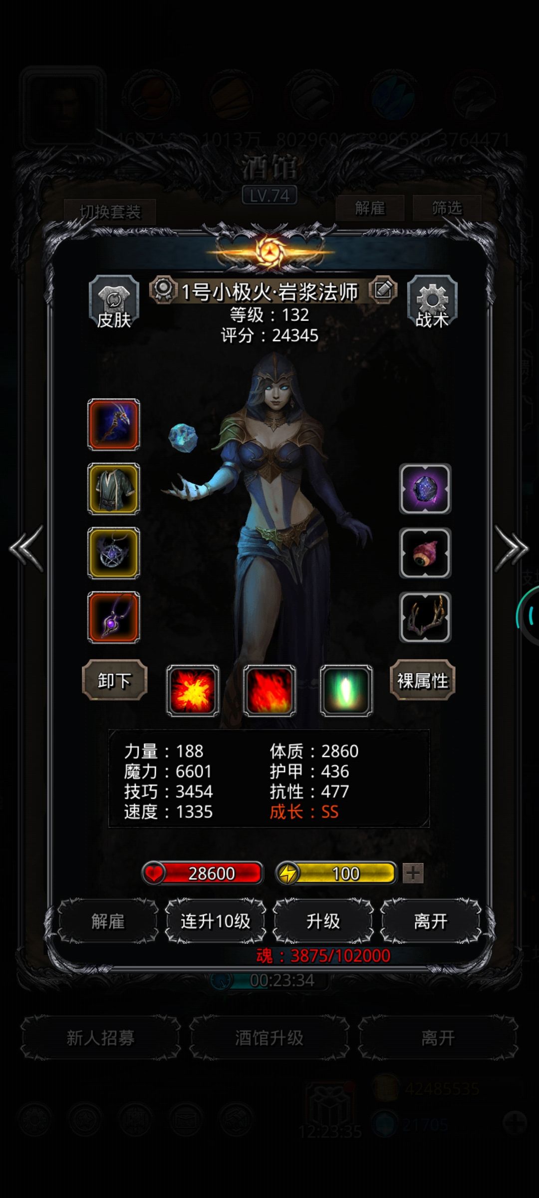 73,74连通:开局先去图一,把虚空脱光后打女刺客送掉(女刺客优先血量少),然后参考73层常规打法 然后进入74层后送掉然后全体复活,扎营换装如下(你没看错,传法换上刚打的新装备),然后参考74层常规打法 75,76层连通阵容:(配置需求非常高,需要物伤单吸,楼主输出不够翻车了)蛮子满命单吸,高魔幻境开减速和吸血(需减速2750+),夜魇满命单吸护甲400+