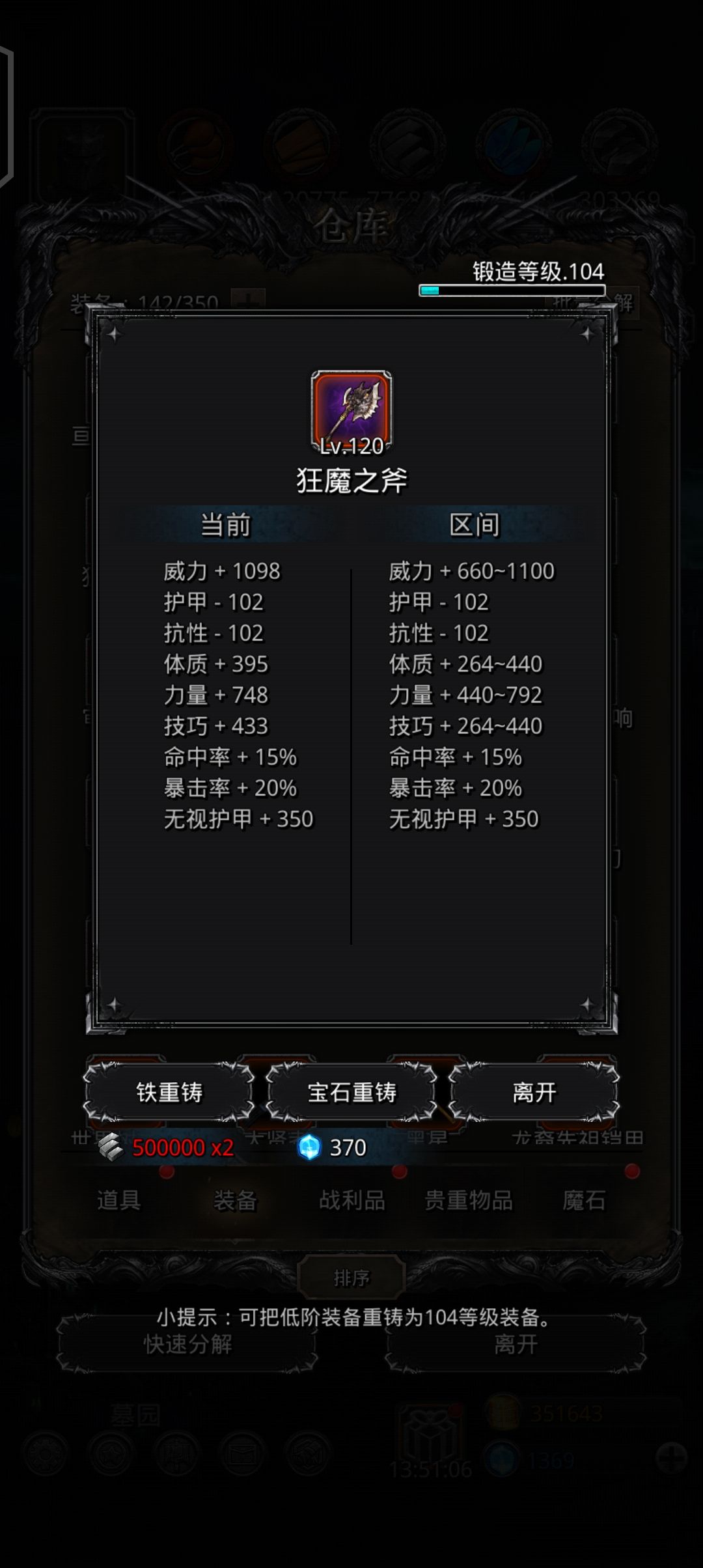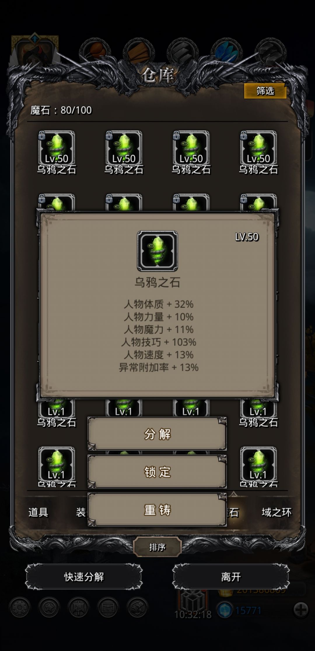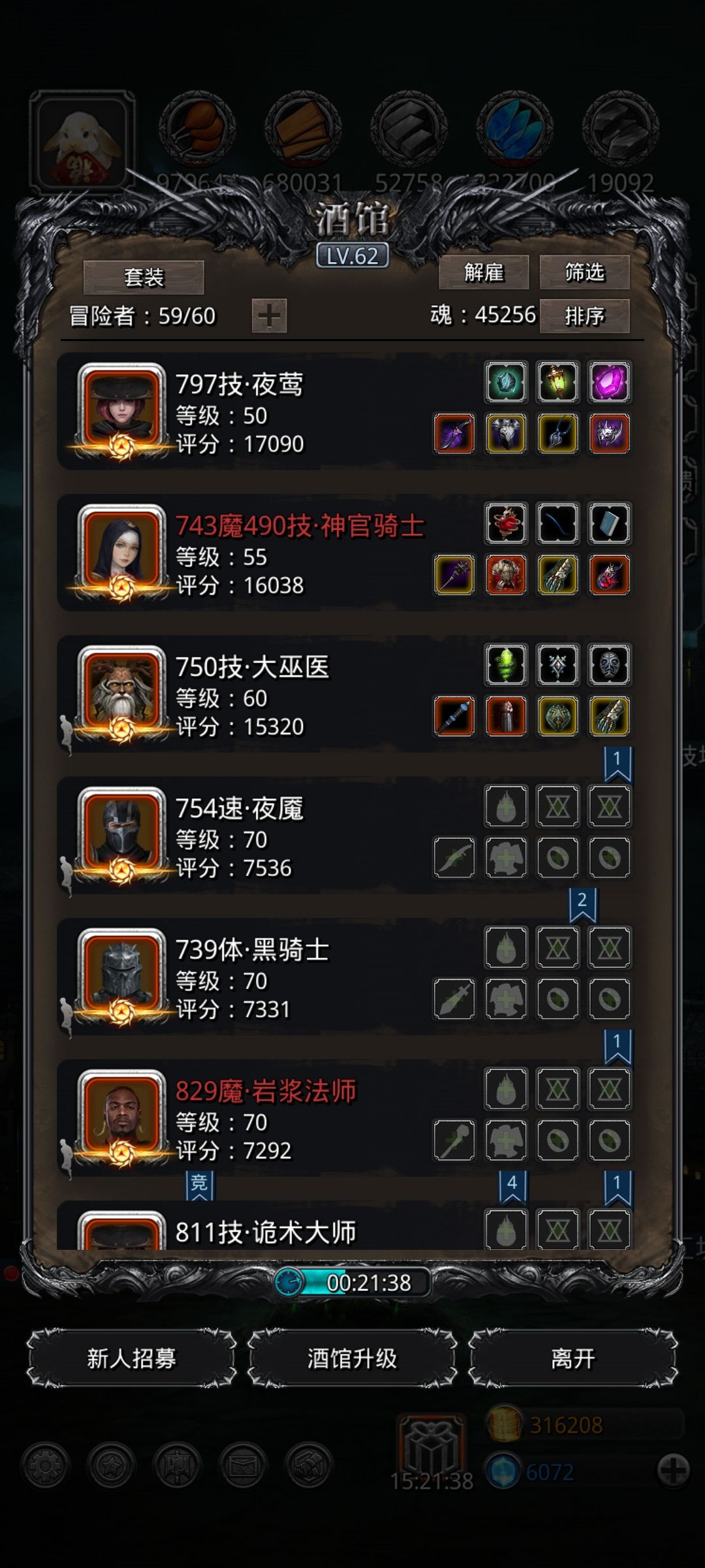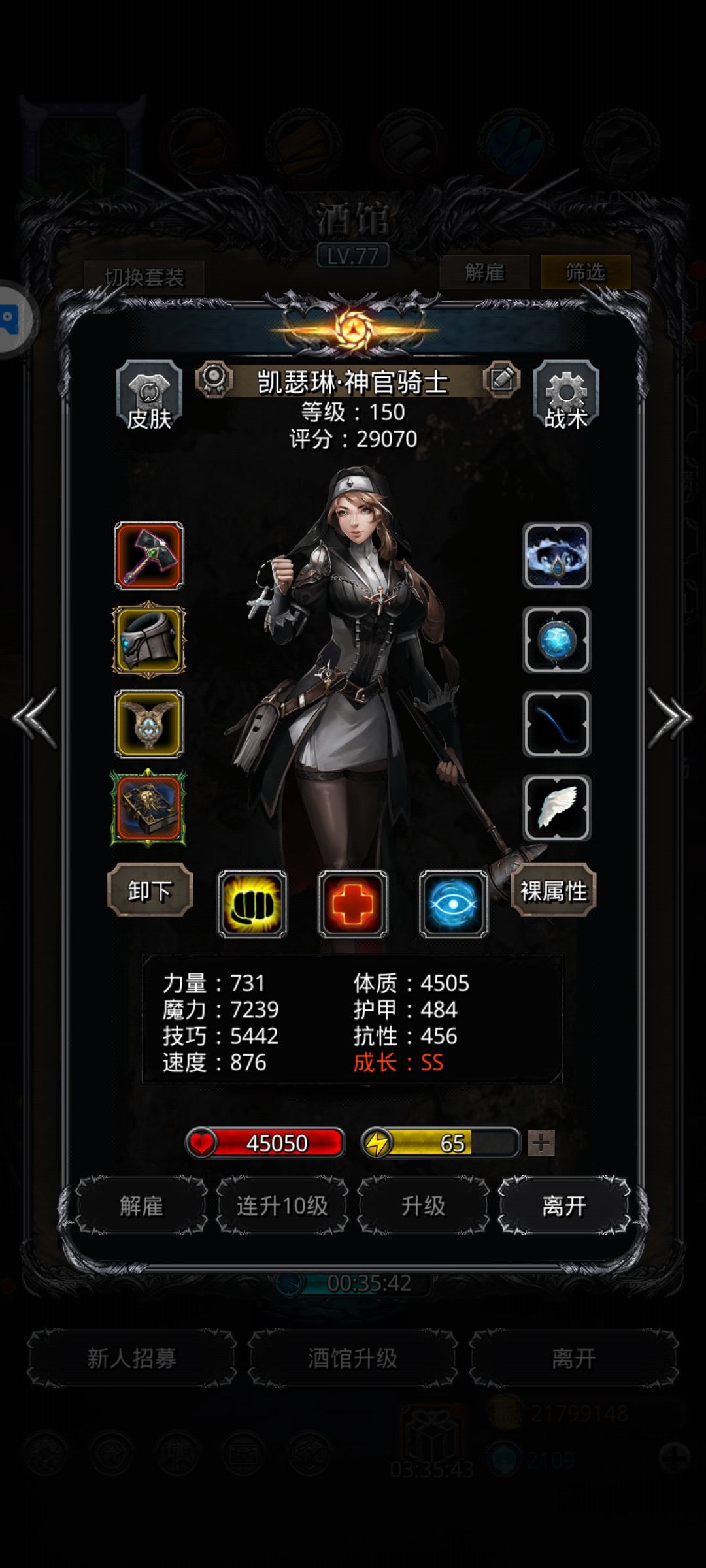 先晒一下狂魔斧 魔石需求:2古精灵2乌鸦,乌鸦石特效是13/15概率回复是增加技巧(不是必要的),按理过裂隙69的乌鸦石应该都是这效果 照抄問天大佬的帖子https://www.taptap.com/topic/16254695 整个过程及其稳定,完全不存在暴毙风险, 比起其他配装这一套有两个群奶,所以神官骑士的奶量压力要小很多,配装上可以更多的配置技巧, 配装及回血效果如下: 摆放位置为传法,圣